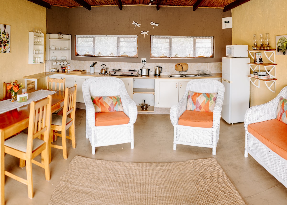 El chalet 1 es agradable y espacioso con dos dormitorios con baño privado con ducha exterior. Las camas se pueden hacer en cama tamaño king o en una cama individual. El chalet tiene una cocina totalmente equipada con una mesa de comedor y un salón. La escalera es donde se lleva a cabo la magia con un braai y una piscina de chapuzón para que la disfrutes.