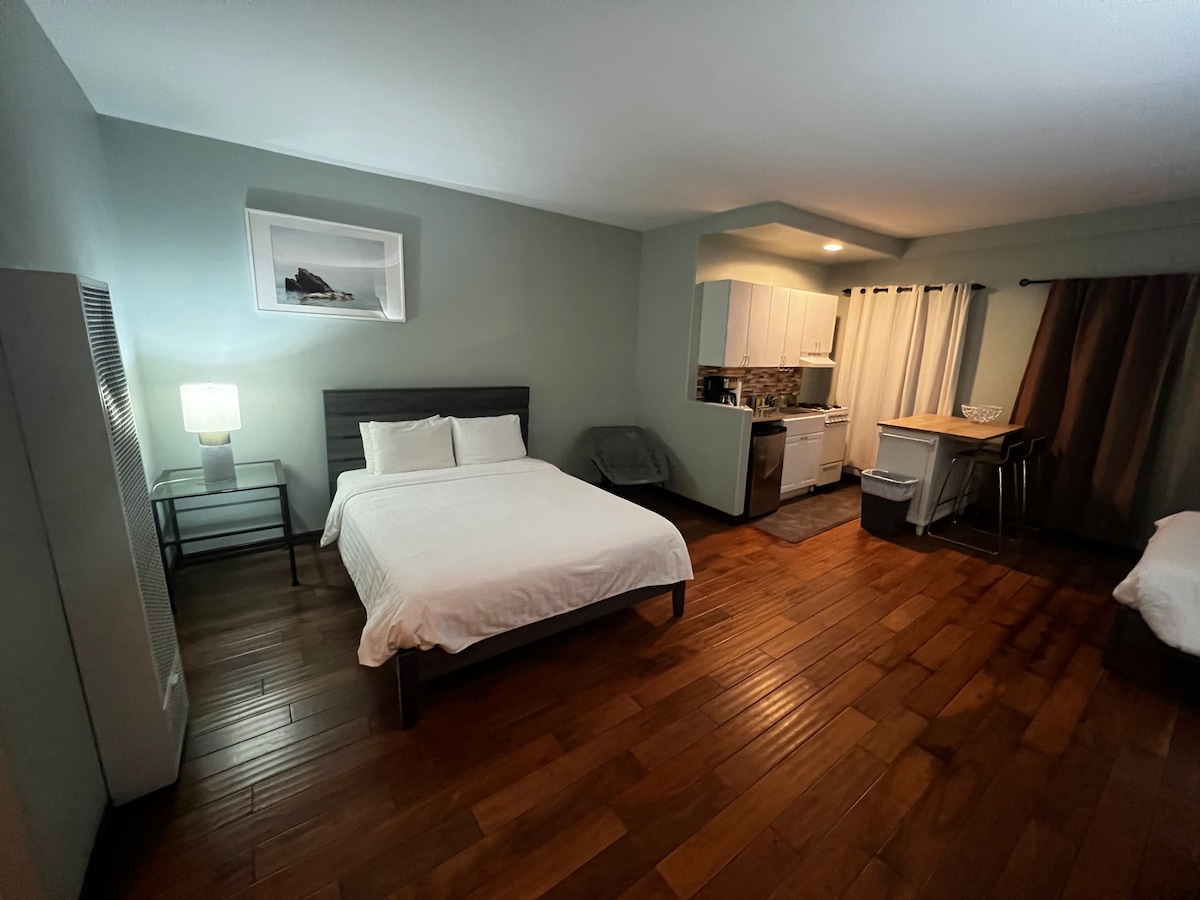 Este estudio tiene una cama tamaño queen con excelentes vistas y viene con cocina americana y baño único de estilo plegable europeo. Hay 4 estilos de estudio, todos con una decoración ligeramente diferente y vistas para cada uno. No podemos garantizar un estilo en particular, pero las solicitudes de bienvenida por orden de llegada. En el ❤ de Hillcrest. ¡Restaurante en el lugar! ¡A poca distancia a pie o en Uber a cualquier lugar Puntuación de caminata 81 (paraíso para los caminantes), Puntuación de bicicleta 59 (muy apta para bicicletas). Barrio seguro, céntrico.