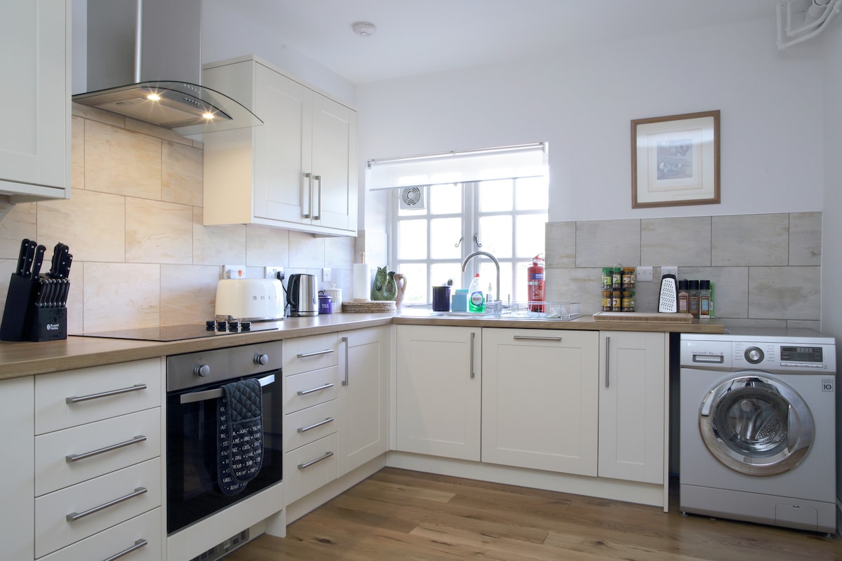 Apartamento independiente de dos plantas. Esta imaginativa casa de caballos del siglo XIX convertida tiene un vestíbulo, cocina y cuarto de ducha en la planta baja con escaleras hasta un gran y luminoso espacio de estar con zona de comedor y dormitorio doble orientado al sur.