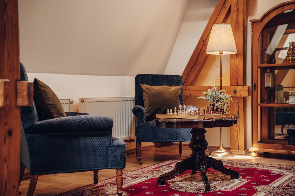 Bienvenido a nuestro exquisito apartamento histórico y lujoso en el corazón de Praga. Retrocede en el tiempo y disfruta de la rica historia y cultura de esta encantadora ciudad mientras disfrutas de todas las comodidades modernas de nuestro lujoso apartamento. Esta residencia única cuenta con una cautivadora mezcla de encanto histórico y elegancia contemporánea, ofreciéndote una estancia inolvidable. · 155 m2-2 plantas · Muebles antiguos. · Mesa de billar · Vista panorámica. · NETFLIX · Seguridad 24/7. · Ascensor