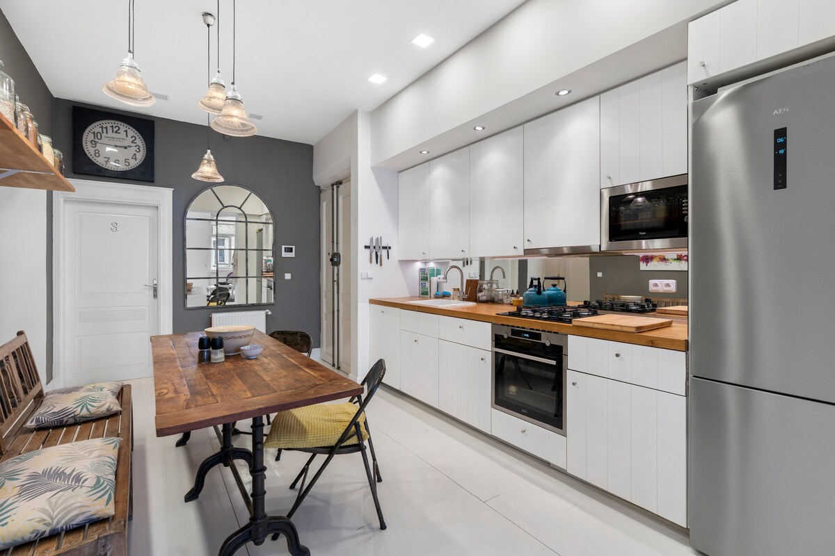 El apartamento está situado en la calle más bonita de Praga. Paris Street es conocida por ofrecer las marcas de moda de lujo más famosas del mundo. La calle París conduce directamente a la plaza del casco antiguo, que es uno de los destinos turísticos más populares debido al famoso reloj astronómico. La calle París y sus alrededores forman parte del barrio judío, que alberga una de las sinagogas más antiguas de Europa. Las ventanas del apartamento dan a la calle Pařížská y al patio interior.