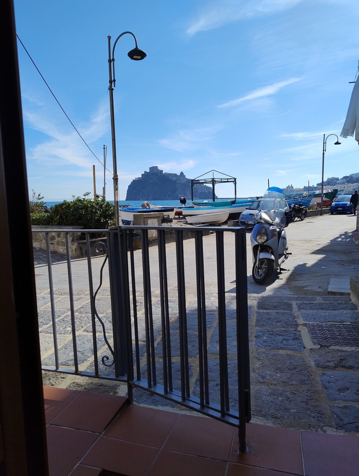 Este es un apartamento de unos 80 metros cuadrados en un edificio del siglo XVI, con vistas al mar, las islas de Procida y Vivara y parte de la costa de Phlegrean, y por supuesto del castillo aragonés. El departamento está ubicado en el centro histórico, el casco antiguo de Ischia Ponte, y está rodeado de todas las instalaciones principales, tiendas, restaurantes, farmacias, tiendas de alimentos, etc. El dormitorio doble y la sala de estar principal están en dos niveles diferentes, conectados por unos pocos pasos, hay un pequeño dormitorio individual, una cocina con sala de estar, un vestíbulo de entrada y tres baños, uno de los cuales tiene ducha. Hay dos entradas: una directamente desde el casco antiguo y la otra sobre una hermosa terraza (aprox. 15 m2) desde el paseo aragonés. Encontrarás TV vía satélite (Astra) y TV digital italiana, así como Internet y calefacción eléctrica. El apartamento tiene una estufa de cuatro quemadores, horno, nevera, lavadora, secador de pelo, microondas, hervidor y suficiente equipo de cocina y sábanas. A pesar de su ubicación muy céntrica, es un lugar muy tranquilo, perfecto para aquellos huéspedes que quieran disfrutar de las bellezas del Golfo y del casco antiguo de Ischia en un ambiente acogedor y sereno. A pocos metros de la terraza, el embarcadero se encuentra la zona de amarre de pequeños barcos de pescadores que venden pescado fresco, y a 200 metros hacia el centro encontrarás una antigua panadería con horno de madera todos los días que vende su delicioso pan fresco.