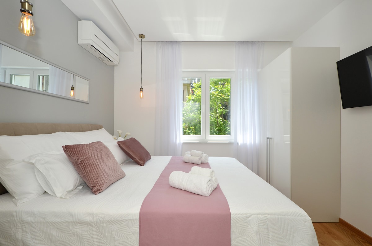 ¡PREGUNTA POR NUESTRAS PROMOCIONES DE TEMPORADA BAJA PARA ESTANCIAS MÁS LARGAS - 1 DE NOVIEMBRE - 1 DE ABRIL! Un apartamento de lujo único está perfectamente ubicado, justo encima del palacio de Diocleciano. Para llegar a la costa, disfrutarás de un corto paseo de tres minutos por la parte más encantadora de Split con la familia. Disfrutarás de la mejor vista de la ciudad desde nuestra generosa terraza (60 m2). Detrás de la villa hay un enorme parque/bosque Marjan, que ofrece playas, senderos, muchas posibilidades para sentir el Mediterráneo como una vez fue.