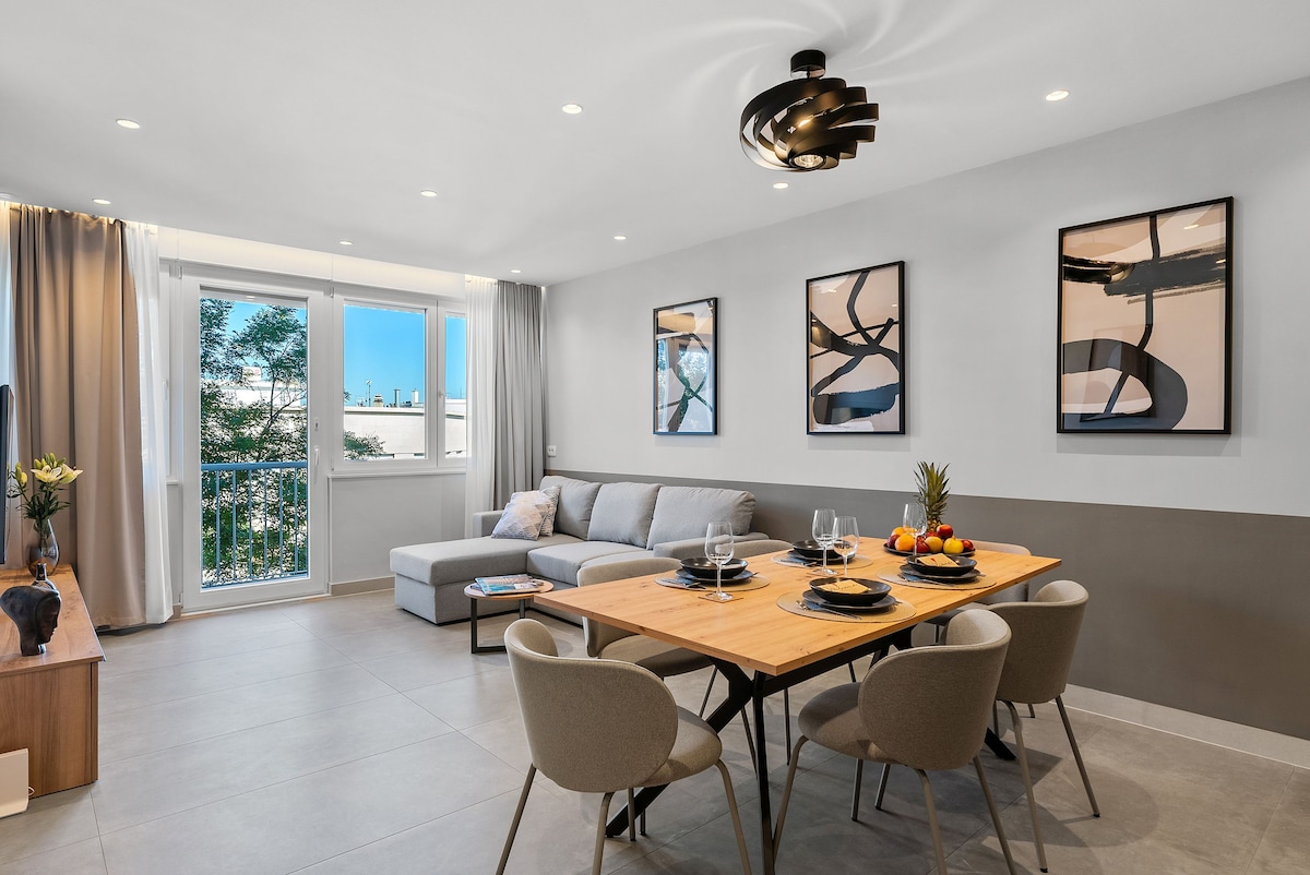 Este increíble y elegante departamento frente al mar con IMPRESIONANTES vistas al mar se encuentra en el centro del hermoso “lungomare”, el paseo marítimo de Riva, a la orilla del mar y justo debajo de Marjan Hill, una zona recreativa muy popular para actividades al aire libre como andar en bicicleta, caminar y correr. Este moderno apartamento renovado de 73 m2 de 4 estrellas está extraordinariamente posicionado para visitar el sitio de la UNESCO del Palacio de Diocleciano, los restaurantes, los bares, las playas cercanas y otros lugares populares de la ciudad.