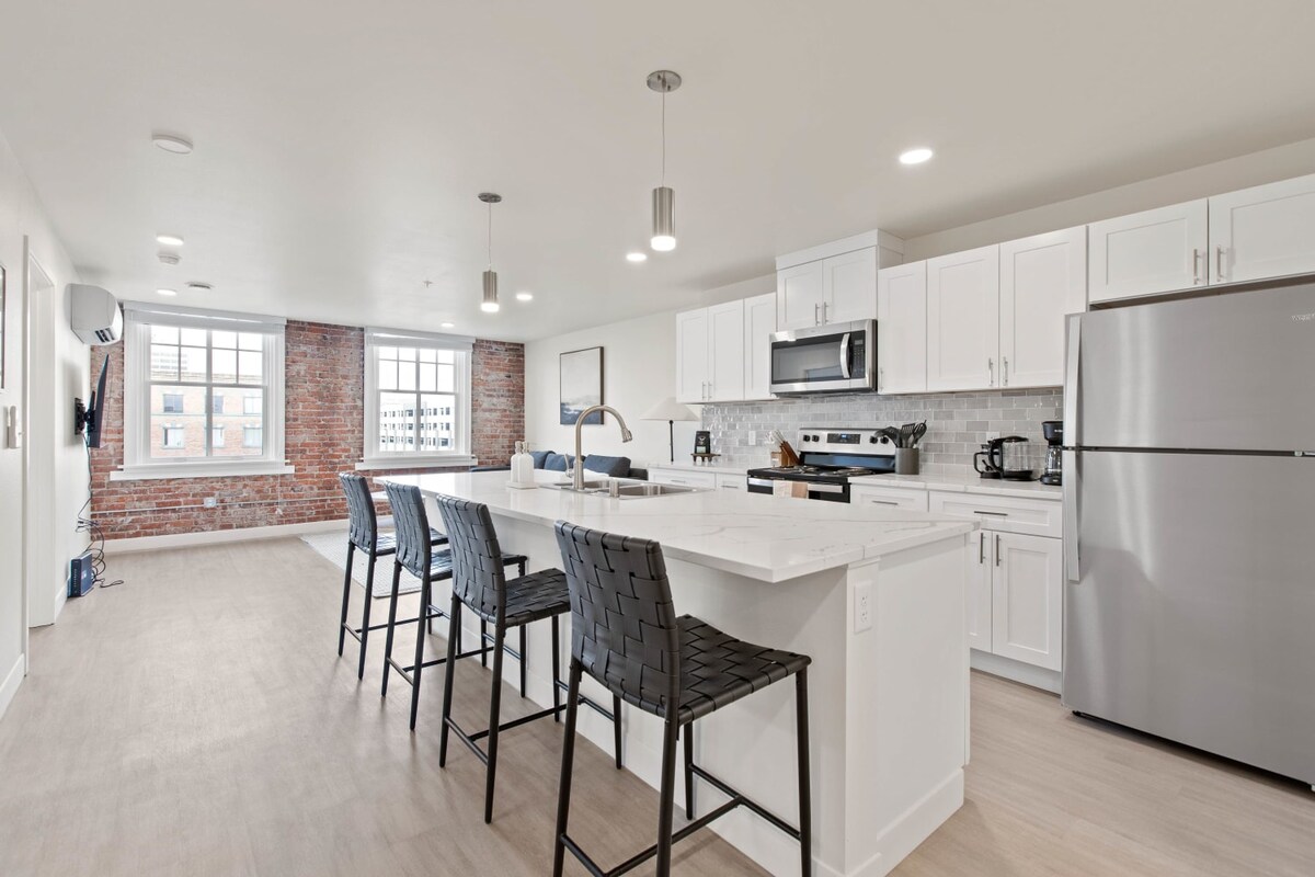 Welcome to J&K on Main! - Thoughtfully renovated with high-end finishes. - Decor and features worthy of any design-admirer’s dream. - Luxury Memory Foam King beds + sleeping for 1 on the couch. - Shared pool table room for socializing. - Fast Business class Wi-Fi and Smart TV - Fully stocked kitchen and in-unit laundry. - Paid secured parking garage nearby ($30+/day which is standard for downtown.) - Convenient distance to Spokane’s best dining, shops, bars, and cafes.