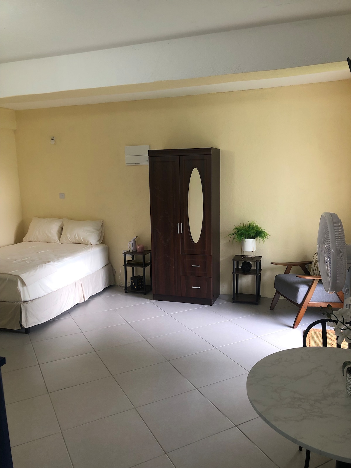 Pitaya Suites: tu sereno refugio tropical a pocos minutos del corazón de la ciudad. Escondida en un exuberante jardín tropical, nuestra suite de un dormitorio ofrece el equilibrio perfecto entre comodidad moderna, belleza natural y comodidad sin esfuerzo. Tanto si viajas por trabajo, como si eres un explorador solitario, una pareja en una escapada romántica o un nacional que regresa, Pitaya Suites te invita a relajarte, recargar las pilas y descubrir San Vicente y las Granadinas a tu propio ritmo, aislado pero perfectamente conectado.