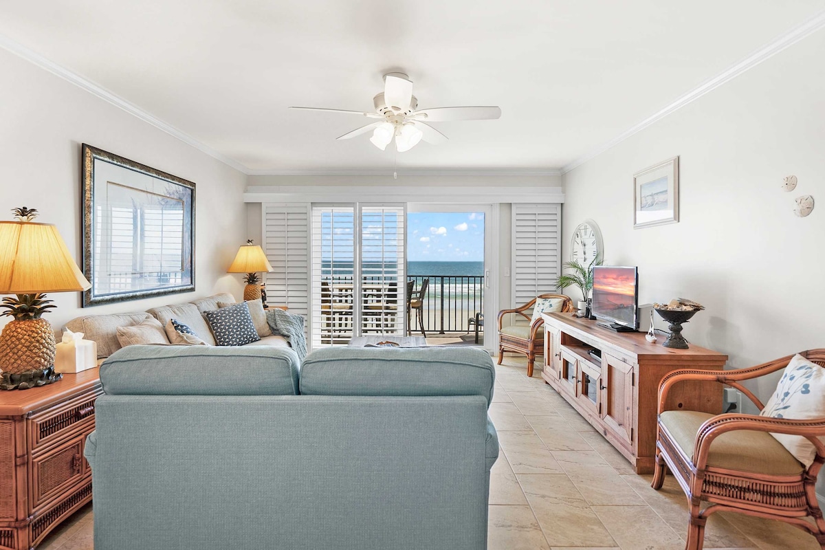 Skipper's Hideaway es un encantador refugio junto a la playa con capacidad para seis personas, con una cama tamaño king, un sofá cama tamaño queen y un sofá cama doble con cama nido. Situado en la planta baja para facilitar el acceso, el condominio ofrece una vista parcial del océano Atlántico desde la ventana de la sala de estar. A pocos pasos de Crescent Beach, este lugar tranquilo es perfecto para relajarse. Para más emoción, las tiendas, restaurantes y la vida nocturna del centro de St. Augustine están a solo 15 minutos en auto.