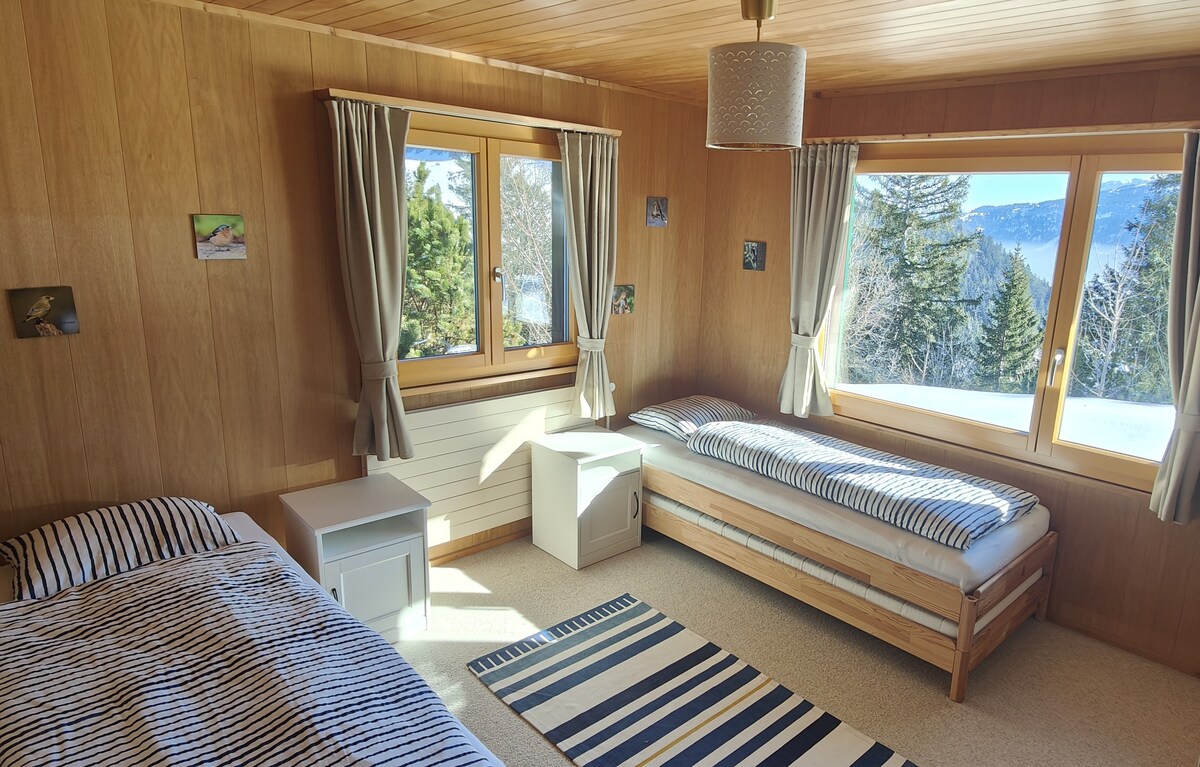 Nuestro hermoso y acogedor chalet de montaña ha sido recientemente renovado con muebles de diseño. Hemos construido recientemente una terraza muy grande con acceso directo al jardín, con vistas increíbles. El chalet se encuentra a una hora en coche de Zúrich, en Arvenbühl, a 1250m de altitud. El chalet es ski in-ski out. Tiene 3 dormitorios: 1 dormitorio principal con una cama queen, un segundo dormitorio más pequeño con una litera y en la planta superior (techo bajo), hay 4 camas adicionales. Es perfecto para una familia de 2 a 7.