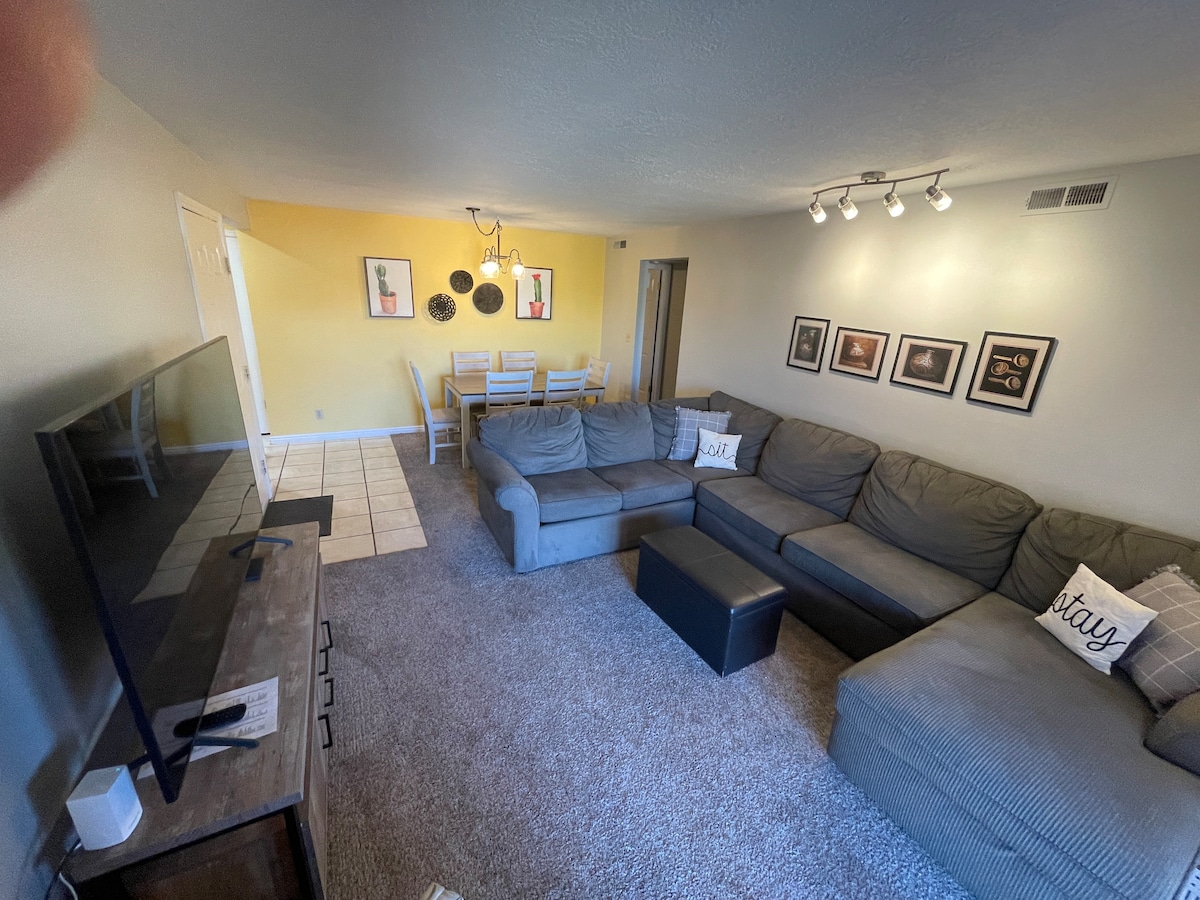 Precioso apartamento en St. George! 3 dormitorios y 3 baños. Capacidad para 10 personas. El balcón tiene vistas a la bañera de hidromasaje y a la piscina, así como a las canchas de baloncesto y pickleball. En el apartamento hay disponibles pelotas y paletas de pickleball, balones de baloncesto y juegos de mesa para tu uso. Nos encanta estar en el tercer piso por las vistas y porque podemos guardar fácilmente nuestras bicicletas en el balcón. Hay increíbles rutas de ciclismo por todas partes, con acceso al sendero Bearclaw Poppy (nuestro favorito) justo al otro lado de la calle.