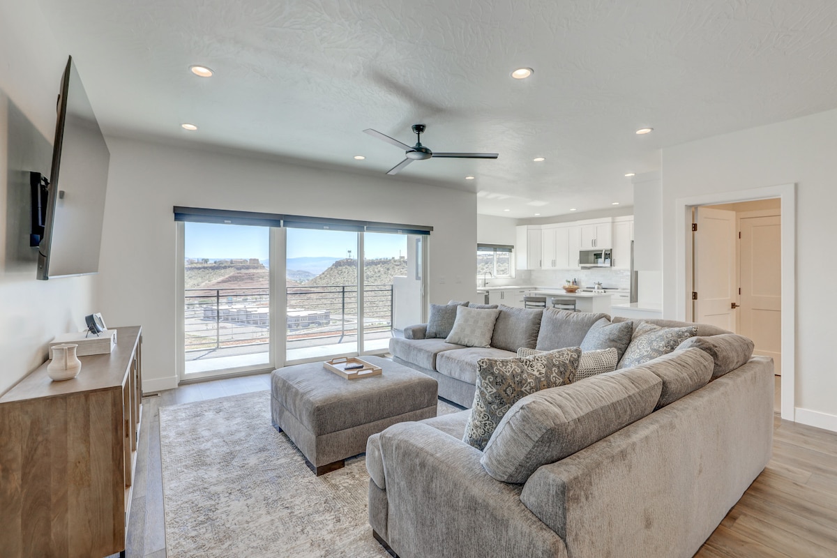 MILLION DOLLAR VIEW!! Come play in the red rocks and stay in our beautifully updated 2b/2b condo. Spacious unit sleeps 6 comfortably. Two large screen ROKU TV's, large table for dining and working needs, and fully appointed kitchen. Sports Village amenities include pools, hot tubs, kiddie pool, shuffle board, exercise room, tennis, racquetball, and pickleball courts. Trails for hiking and biking and quality St. George golf within minutes.