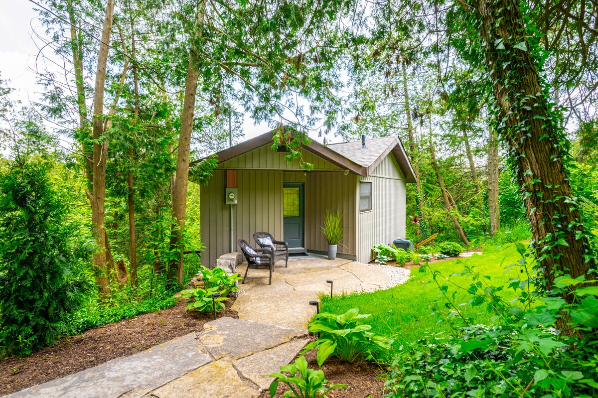 Bienvenido a tu suite privada, ubicada entre los árboles sobre el hermoso río Irvine de Elora. A pocos pasos del icónico puente de la calle David, que ofrece una vista panorámica de la garganta, una de las vistas más populares del pueblo. Da un paseo panorámico de 5 a 10 minutos hasta el molino de Elora o los numerosos restaurantes y tiendas de calidad, y luego vuelve y disfruta de una copa de vino en tu porche privado. ¡Es la ubicación perfecta para un retiro en pareja, invitados a una boda, viajeros de negocios, un aventurero de fin de semana o un buscador de soledad!