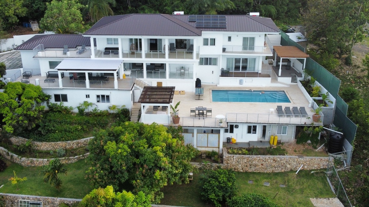 4 Private Rooms with 3 en-suite bathroom in a home designed for cozy social living. 5-minutes from the Ocho Rios airport (OCJ), and 15-minutes from Ocho Rios town, this home boasts an airy, open-concept, living room, dining area, and kitchen ideal for gatherings. Step outside onto the expansive wraparound balcony with breathtaking 180-degree sea view. Perfect for morning coffee, and watching the sunrise. Outside, a spacious garden awaits you, with lush fruit trees offering fresh delight