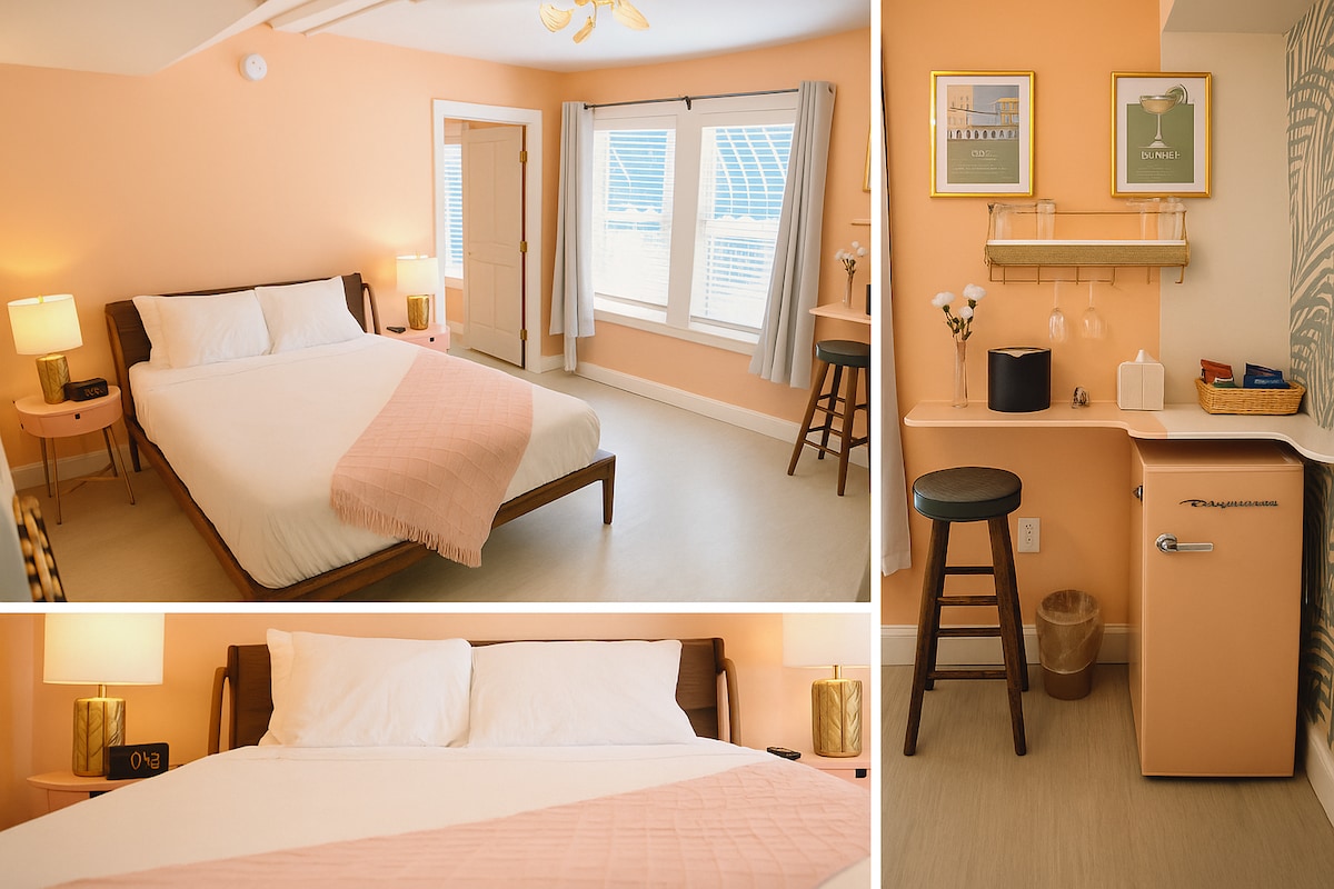 Este Airbnb ofrece una experiencia única para hospedarse en un motel retro estilo mamá y pop. La propiedad tiene un total de 10 Airbnb. No hay vestíbulo para los huéspedes, sin embargo, también enumeramos el traje del propietario con recepción en airbnb. Puedes encontrarlo en “Seaside Artisan Motel Owner Suit”. Este Airbnb está a pocos pasos de los restaurantes, tiendas y bares de Dunedin. Está a unos 4 kilómetros de Honeymoon Island y a unos 6 kilómetros de Clearwater Beach.
