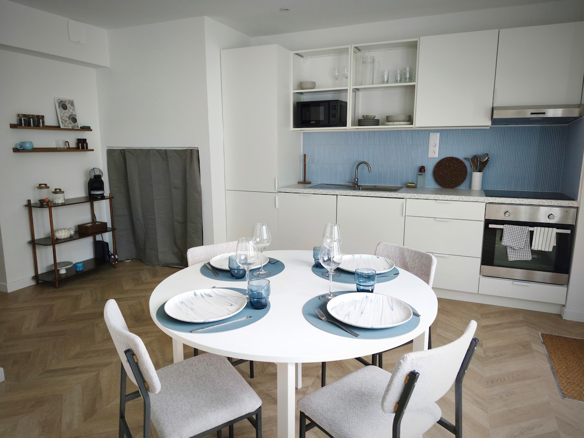 Bienvenue à La Perle Bleue, un T3 rénové avec amour au cœur de Brest ! Découvrez notre appartement lumineux et chaleureux, idéal pour 4 personnes (jusqu’à 6 avec le canapé-lit). Deux chambres élégantes, un salon convivial avec poufs et télé, une cuisine équipée et une salle de bain cosy vous attendent. À deux pas du tram, du centre-ville et des plages, vous profiterez d’un séjour confortable et pratique, parfait pour familles, amis ou voyageurs en quête d’authenticité brestoise.
