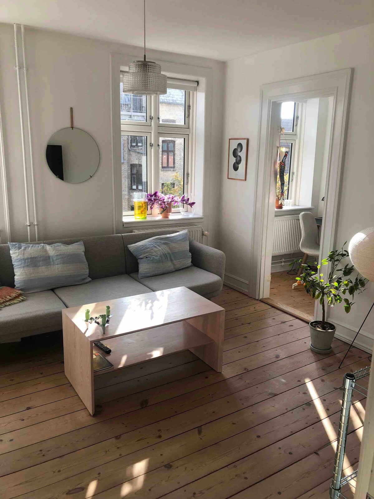 Newly renovated appartment in a modern Scandinavian style with a balcony and high ceilings . In the center of Copenhagen close to Nyhavn but quit, restaurants, museums and the metro. The spaceus kitchen-dining area includes plates and coops from Royal CPH. Living room with white sofas, fireplace and modern danish art. The office includes an old beautiful brash bed. Masterbedroom has a king size bed (1.8 m wide times 2 m long). The bathroom has a shower, zink, and toilet and - equipped with Vola.