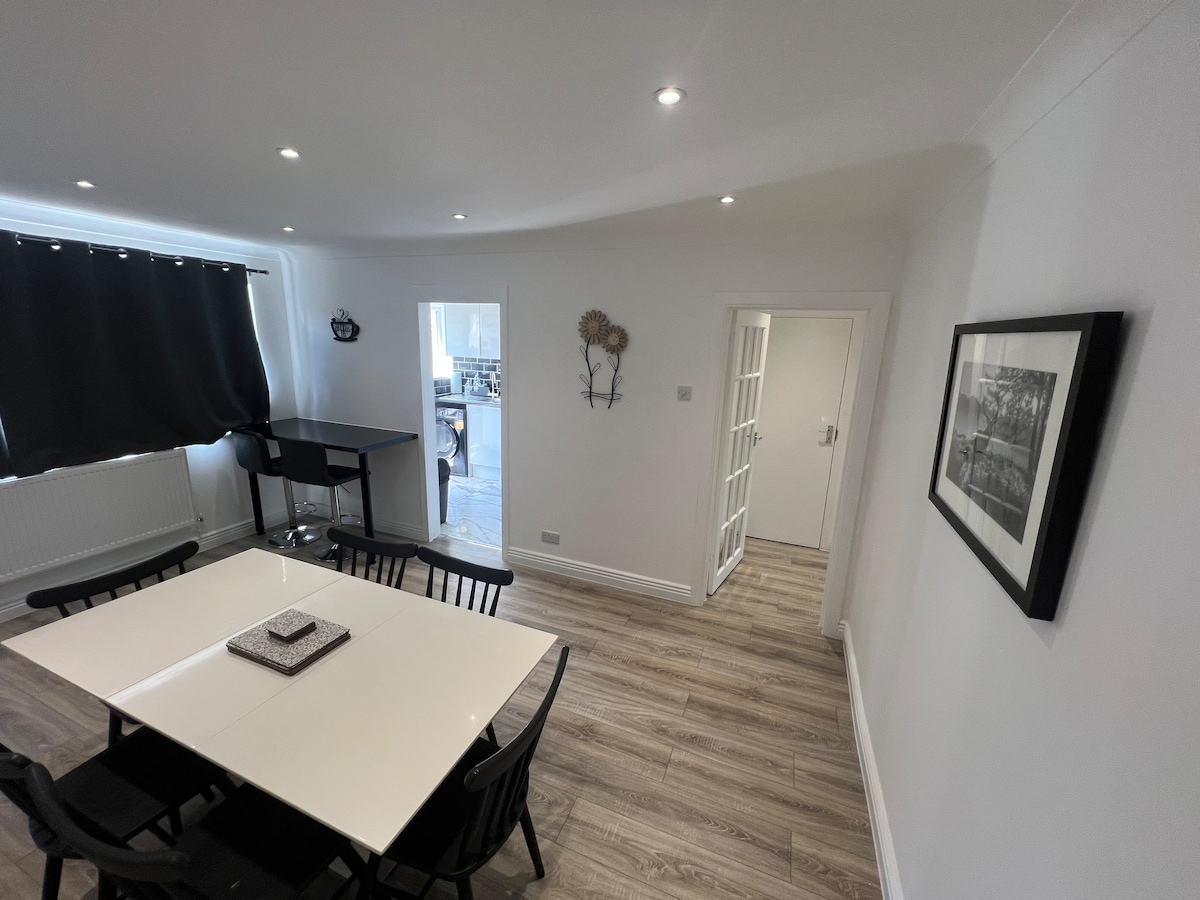 Apartamento grande de dos dormitorios para uso exclusivo. Incluye un gran baño, cocina con todos los servicios modernos. Salón y entrada privada. Estacionamiento con permiso disponible. A menos de cinco minutos a pie de la estación de tren de Laindon, que ofrece conexiones directas regularmente a London Fenchurch Street (30 minutos) Southend-on-Sea (20 minutos) Leigh-on-Sea (15 minutos) y a poca distancia del aeropuerto de Londres Southend (a 30 minutos en coche) y del aeropuerto de London Stanstead (a 40 minutos en coche). Se proporcionan sábanas, toallas y albornoces.
