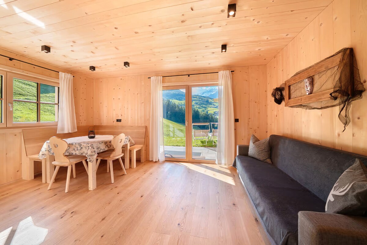 El acogedor apartamento "Innerwalten 100" se encuentra en Walten (Valtina), un pintoresco pueblo de montaña a 1.300 m de altitud, perteneciente a San Leonardo in Passiria. El amplio alojamiento tiene capacidad para 8 personas y dispone de un gran salón-dormitorio con 1 cama doble y 2 sofás cama para 2 personas cada uno. Además, cuenta con 1 dormitorio independiente con cama doble y una pequeña cocina equipada con 2 fuegos y una nevera pequeña. El baño es espacioso y tiene bañera.