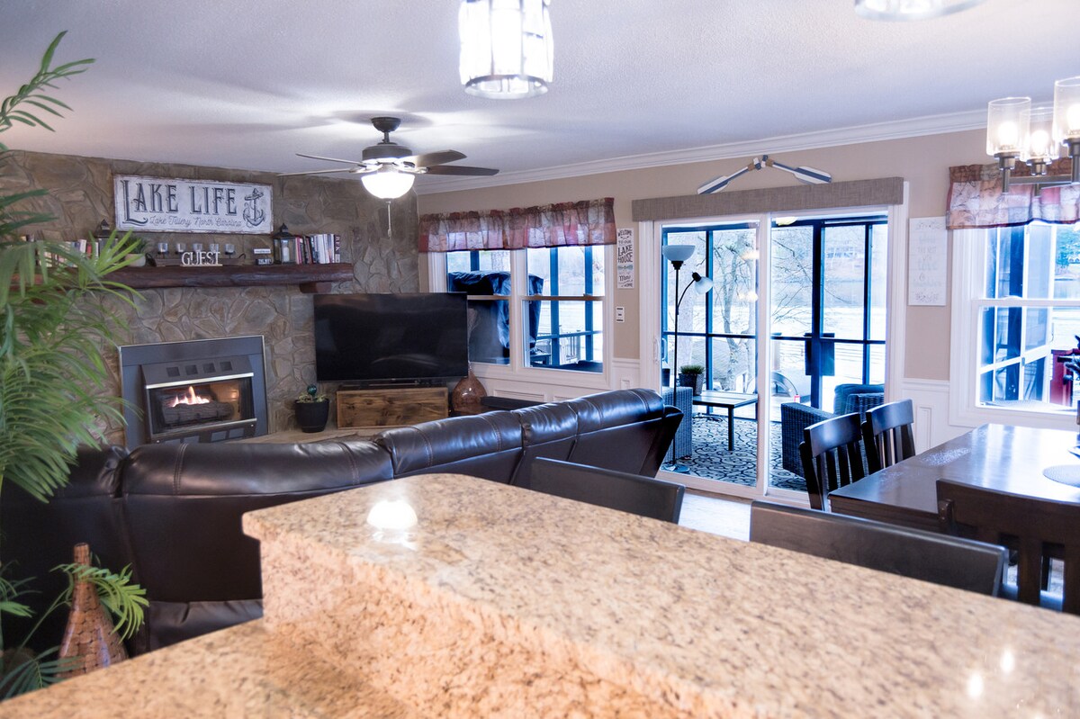 Come kick up your feet on our waterfront deck & enjoy Lake Life at our charming 3 bed/2 bath home. Relax with the whole family or group of friends in our cozy accommodations, kitchen w/everything you need to cook in or grill out, 3 seasons room where you can sit by the fire or feast at the oversized table with views of the lake! Boating, swimming, fishing, kayaking & paddle boarding at your fingertips. You won't want to leave, but it's only 15-20 min from restaurants, stores, vineyards, & more!