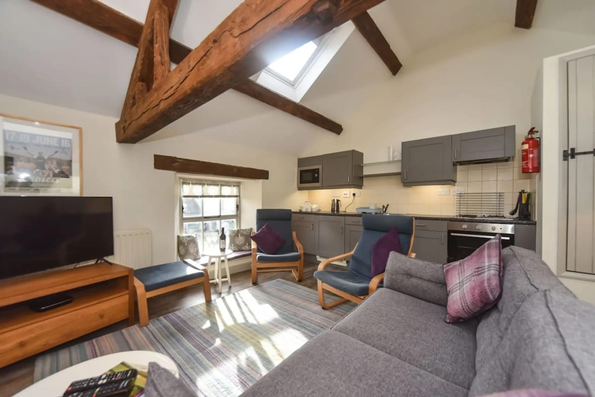 Perfecta para reuniones familiares y de grupo. Casa de piedra grande y acogedora de 1870 con calefacción moderna y estufas de leña románticas. Cocina comedor de casa de campo. Hay 3 zonas de estar: sala de estar, 'snug' y conservatorio. 5 dormitorios adecuados para 10 personas. Camas tamaño king y super king con opciones individuales. 3,5 baños, incluidas 4 duchas. Amplio aparcamiento. Jardín para barbacoa, comedor al aire libre y césped para juegos. Paseos/ciclismo desde la puerta principal, pub del pueblo y salón de té.