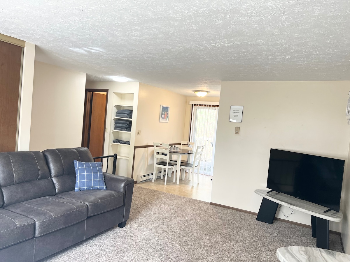 ¡Te damos la bienvenida a tu hogar lejos de casa! Disfruta de tu estadía en una comodidad tranquila con la comodidad de tiendas y restaurantes cercanos. Cocina moderna con electrodomésticos de acero inoxidable, Kuerig, utensilios de cocina, platos, cubiertos, tazas y vasos. Ambos dormitorios ofrecen una comodidad acogedora con una gran cantidad de sábanas, mantas, almohadas, mantas y televisores Roku de 60 pulgadas. El baño completo en el piso principal y el baño completo en el sótano ofrecen abundancia de toallas y productos de ducha. Lavadora/Secadora en el piso principal con jabón para lavar la ropa.