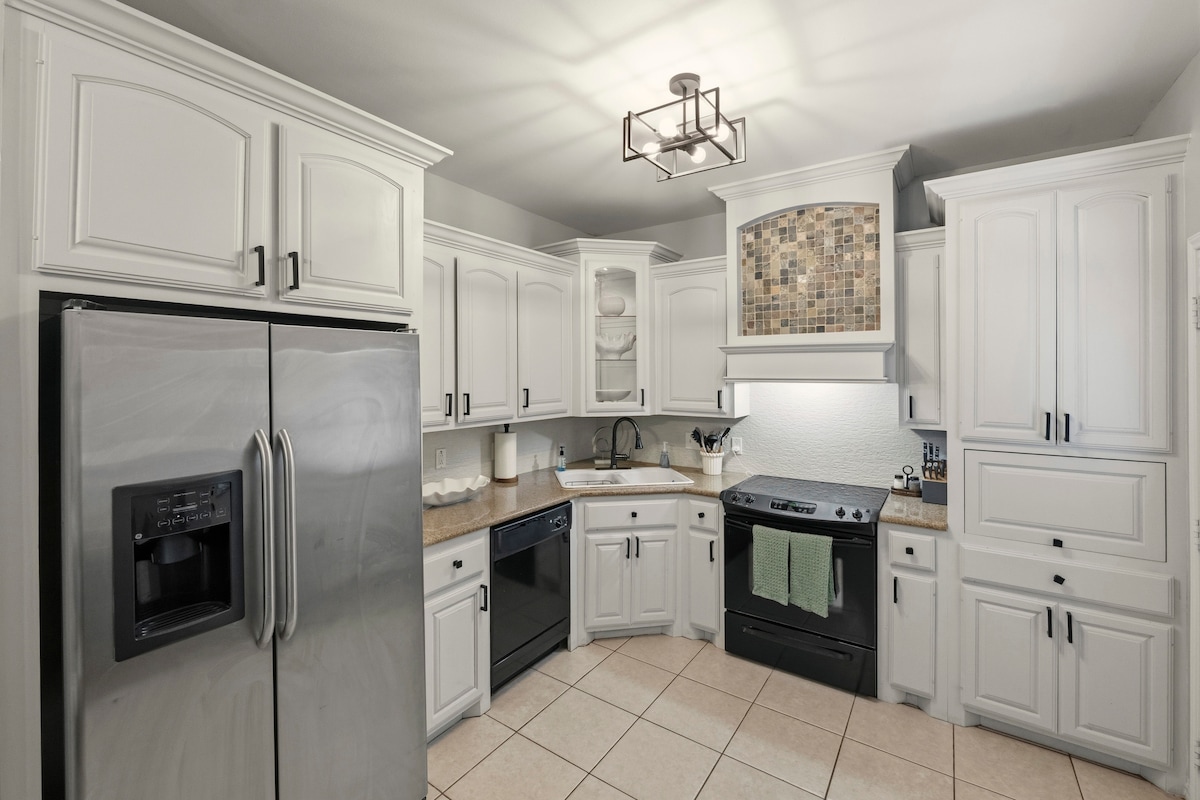 Gracias a la ubicación céntrica de este alojamiento, tú y los tuyos lo tendréis todo a mano. A poca distancia a pie de la escuela para caminar y correr. También está a unos tres minutos a pie del parque de la ciudad y de la piscina donde los niños pueden jugar. El porche delantero te espera a ti y a tu café con muebles de exterior para disfrutar de las mañanas frescas. La espaciosa cocina es el lugar de reunión con todo lo necesario para un delicioso desayuno por la mañana y una sabrosa cena por la noche. No querrás marcharte.