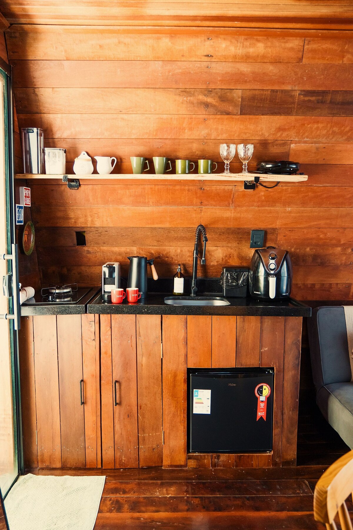 ✨ O Chalé Jatobá é um espaço sofisticado e intimista, pensado especialmente para aqueles que desejam viver momentos de conexão e descanso 🍃 O Chalé Jatobá inclui: • Banheira de hidromassagem ao ar livre – cercada por vegetação e paredes com textura rústica. • Mesa posta para dois – com sousplats naturais, taças de cristal e pratos de cerâmica. • Quarto aconchegante com ar-condicionado e roupa de cama. • Cozinha equipada – com utensílios completos. • Banheiro com estilo rústico-chique.
