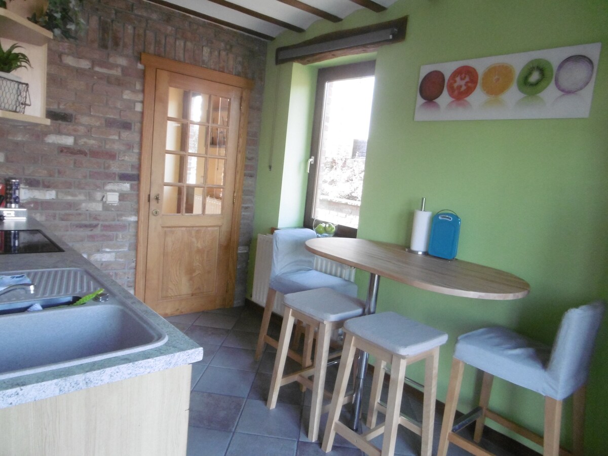 En el borde del bosque, la casa de COLOR NATURAL le espera para una magnífica estancia relajante e inmersión en el corazón de las Ardenas de Lieja, una de las regiones más bellas de Bélgica. La casa climatizada es totalmente independiente. Incluye sala de estar, cocina, dormitorio con cama doble, "cabaña" con literas y baño. Jardín y terraza están orientados al sur. Hay para todos los gustos: paseos a pie, extratrail, actividades familiares, visitas culturales, restaurantes gourmet...