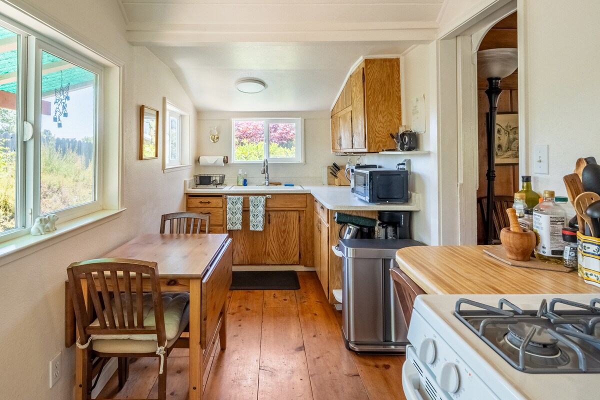 La casa de campo tipo pan de jengibre (600 pies cuadrados) fue construida con secuoya de crecimiento antiguo en 1922. Desde entonces remodelada con todas las comodidades. Un santuario privado, apartado y escondido de la calle. A dos manzanas a pie del océano a lo largo de un camino arbolado en un barrio tranquilo en el lado oeste. Serena y tranquila, con una encantadora terraza al aire libre y jardín. A media milla de una selección de catas de vinos boutique, cervecerías y tostadores de café. Sentimos no poder alojar a niños menores de 5 años por motivos de seguridad. 2 noches como mínimo.
