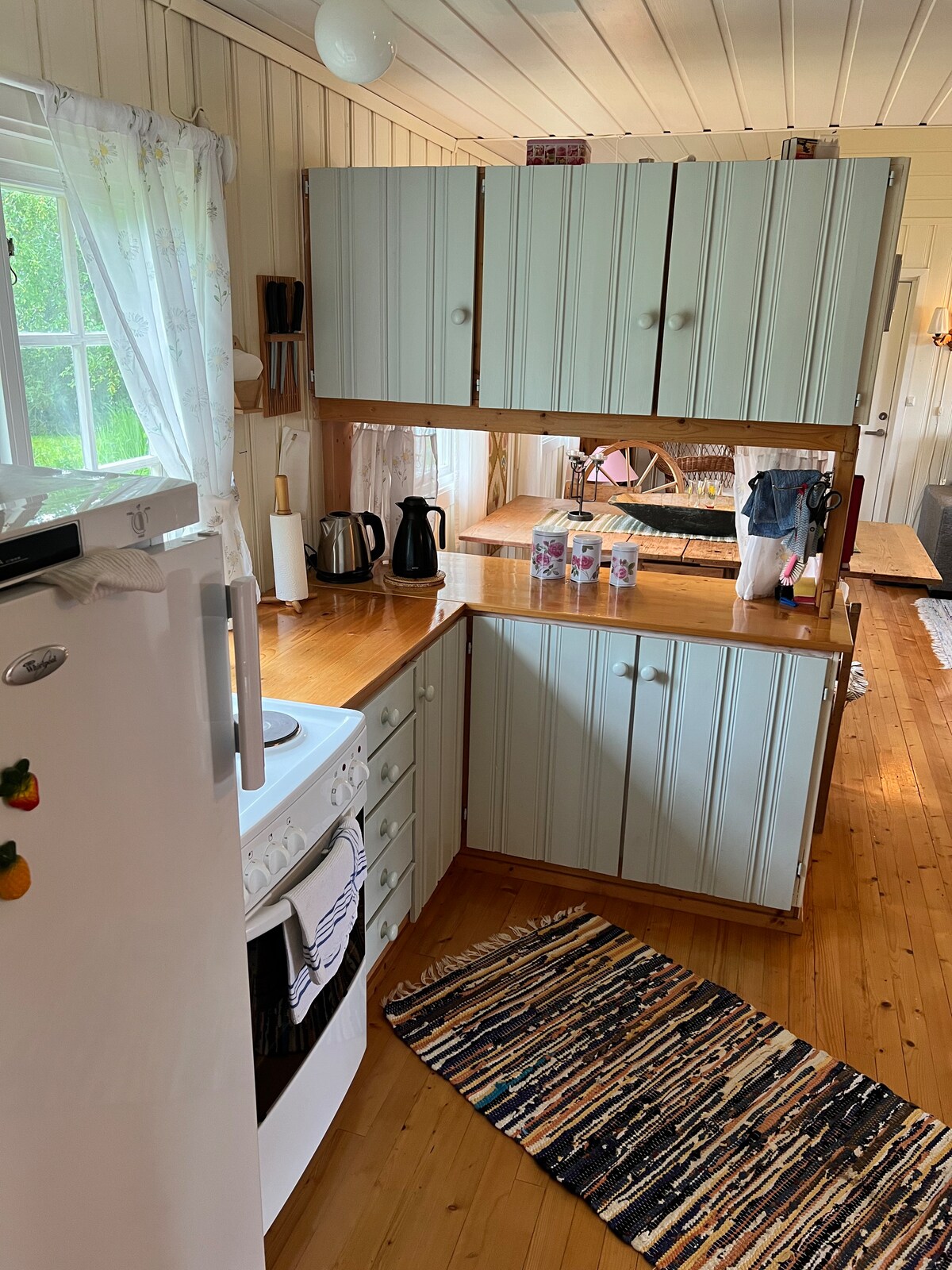 Nyoppusset hoveddel i kårhus som ligger skjermet til på gården, med en herlig utsikt over Verdal og Trondheimsfjorden. Det er perfekt for to, og med gjestesengen er det plass til å ha med en til. Det er hester på gården som kan sees fra huset. Trivsel her med hele familien, ingen trafikk forbi huset. Ønsker dere overnatting for fler enn tre, er det mulig å leie en hybel i tillegg. Muligheter for å leie stallplass til hest ved behov. Nærhet til E6 (3,6km), Verdalsøra (3,9km) og Stiklestad