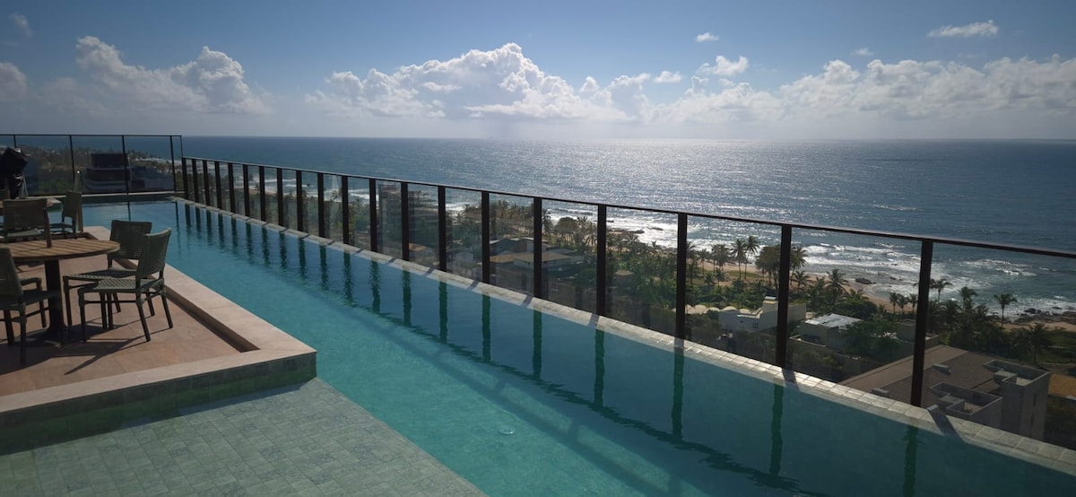 ¡Para las personas más exigentes! Disfruta de momentos inolvidables en "Paradise View" en Salvador. Apartamento nuevo, espectacular vista al mar, balcón con cerveza, decoración tropical, Smart TV 55, aire acondicionado, Wi-Fi 500Mb y cocina completa. Tiene capacidad para 4 personas (6 con un cargo adicional) con 2 camas dobles y 1 bicama. Edificio con piscina infinita, azotea, gimnasio, pub, coworking, barbacoa, conserje las 24 horas y cochera cubierta. Ubicación perfecta, en la playa y a 10 minutos del aeropuerto.