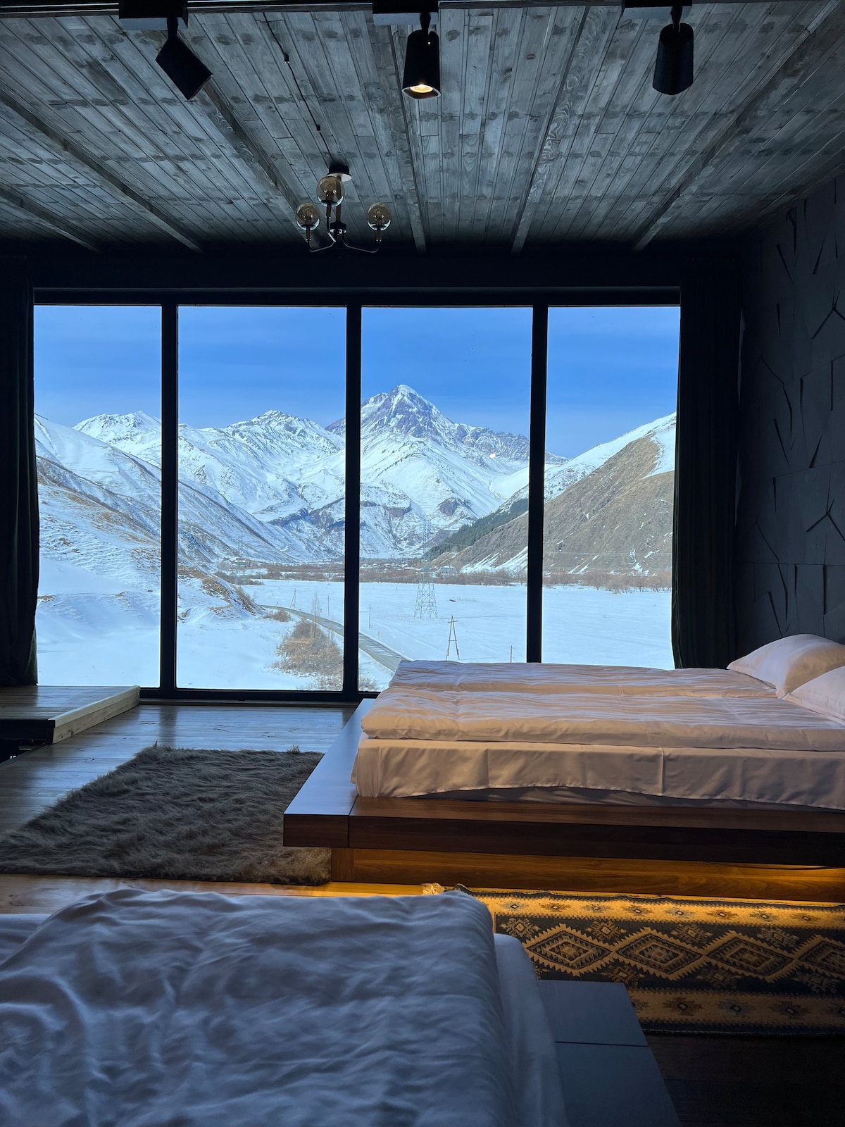 Siéntete como en casa en nuestro nuevo apartamento de 2 dormitorios en Kazbegi. El apartamento consta de 2 dormitorios grandes y luminosos con cómodas camas tamaño king y cocina totalmente equipada.