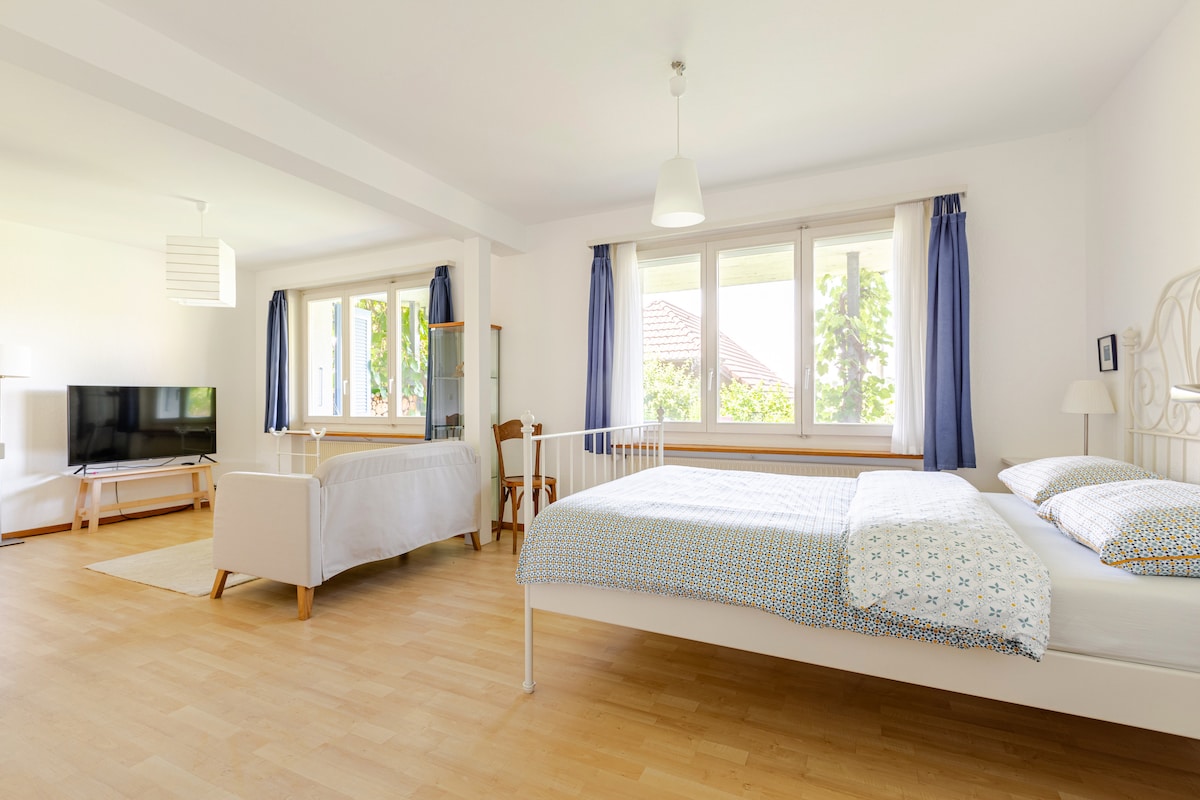 Stylish studio apartment with corresponding sitting place in the quiet embassy district 10 minutes from the center of Bern (Zytglogge) by tram. A good place for couples, individual and business travelers. The studio is completely independent and features a separate entrance from the corresponding sitting place. The studio is newly renovated, modern and stylish equipped: Two single beds, leather furniture, floor heating and kitchen with dishwasher, oven, fridge, washing machine, cooking plate.