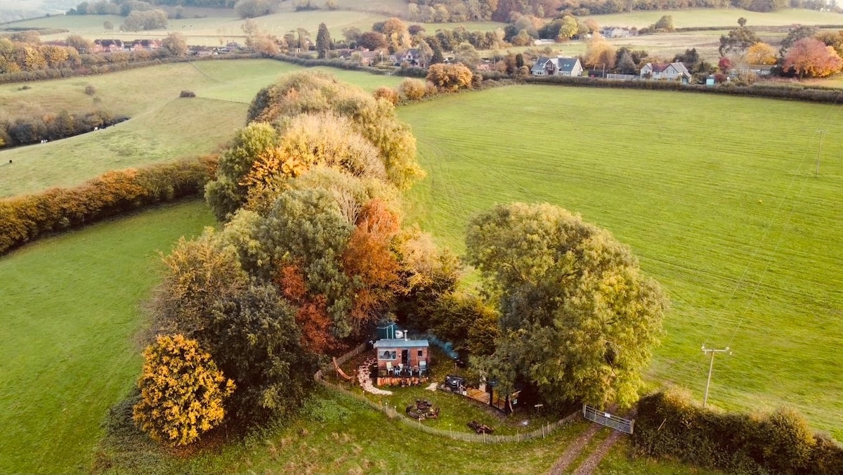 A bespoke shepherd's hut, made by a local craftsman residing on rolling pasture of a forgotten turf maze and meeting place lost in time. Welcome to the first Troytown shepherd's hut, completed in June 2023. Located on Dorset's famous Jurassic Coastline it is the perfect base for exploring sandy beaches, historic monuments and plentiful walks in nearby Puddletown Forest. Enjoy an off grid cabin experience with views of ancient woodland and sheep grazed pasture.