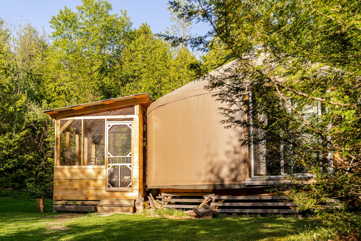 Yurta en una zona forestal privada. A poca distancia a pie de la fábrica de queso (helados, almuerzos, aperitivos), puestos de productos y un parque. A poca distancia en coche de Madoc (comestibles, cerveza/LCBO, parques, playa, panadería, restaurantes, etc.). Zona perfecta para observar las estrellas, dar largos paseos y montar en bicicleta. Esta yurta está en un entorno de camping, con inodoro de compost interior, ducha exterior privada de temporada, sin wifi pero hay electricidad, platos, placa calefactora interior, barbacoa, mininevera, todas las ollas y sartenes y ropa de cama y agua potable limpia.