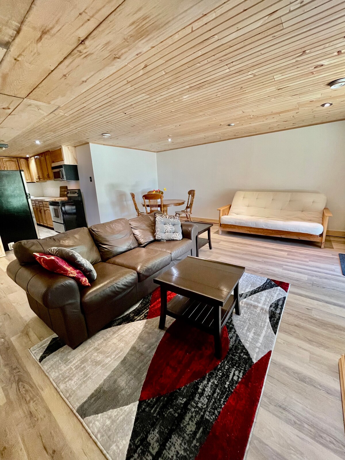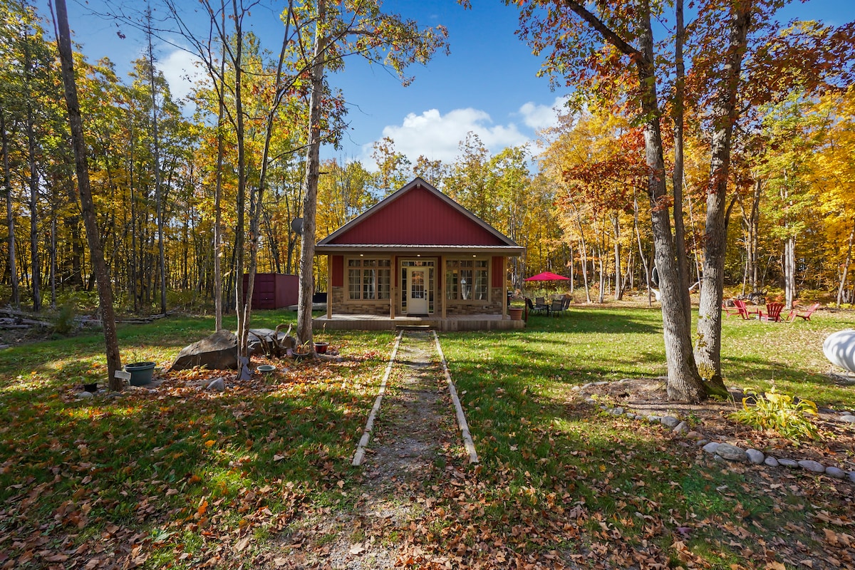 Alójate junto al río Norte en nuestra encantadora cabaña. Frente al río privado para lanzar canoas o kayaks Lanzamiento de barcos públicos al otro lado de la carretera. A poca distancia en coche de varios lagos, el Trent Severn, varios parques, extensas rutas todoterreno y motos de nieve. Loft individual con dos camas individuales que se pueden juntar fácilmente para hacer una cama tamaño king y un cómodo sofá cama tamaño queen en la planta principal. La estufa de leña es la principal fuente de calor. ¡Las mascotas bien cuidadas y sus dueños responsables son bienvenidos!