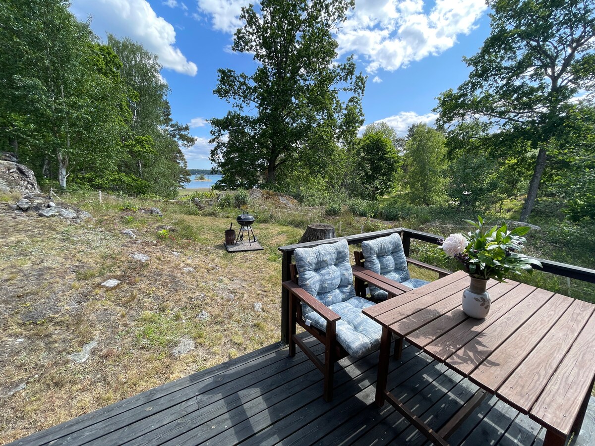 Bienvenido a nuestra casa con gran terraza en el sur y vistas al mar. La casa de unos 65 metros cuadrados se encuentra en Tynningö, una isla cerca de Estocolmo. La casa tiene 4 camas: un dormitorio con cama doble y un dormitorio con litera. Hay una casa en el jardín con 2 camas posibles para usar en verano. Cocina totalmente equipada con comedor para 6 personas y un pequeño baño con inodoro, lavabo y ducha. Sala de estar con chimenea y vistas al mar. Terraza con una mesa para 6 personas y barbacoa. Jardín grande.