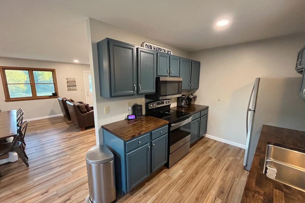 La casa, totalmente amueblada y construida en 2025, ofrece un espacio tranquilo y encantador para descansar y relajarse después de un ajetreado día de trabajo o diversión. Con un diseño de concepto abierto que ofrece a los huéspedes la posibilidad de cocinar y tener conversaciones con otros en la sala de estar contigua. Ubicado en la ciudad hay 3 restaurantes, Casey 's y Dollar General. La comunidad Amish está a un corto trayecto en auto de 14 millas Mark Twain Lake a 32 millas Moberly a 12 millas Centralia 22 millas Columbia 45 millas Hannibal 55