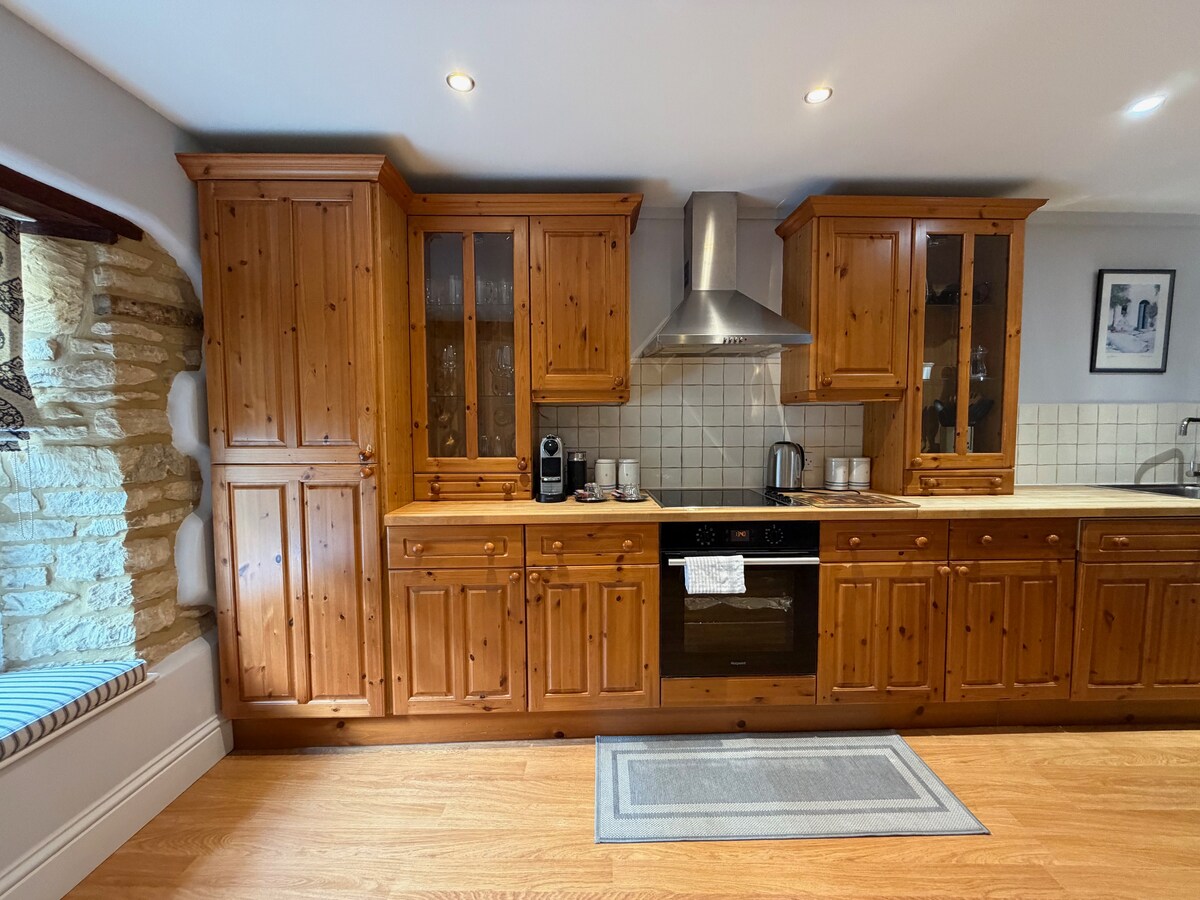 Te presentamos Gable Cottage. Ubicada justo al lado de la famosa Fosse Way, esta histórica casa de campo consta de 2 dormitorios, 2 baños, sala de estar, comedor, cocina con horno Aga y un generoso jardín privado con patio. La casa tiene alrededor de 300 años y está construida con piedra de Cotswolds. Es acogedora y está llena de carácter: vigas a la vista, suelo de piedra original y ventanas pintorescas. Debido a la naturaleza de la casa, ten en cuenta los techos bajos y los pequeños marcos de las puertas.