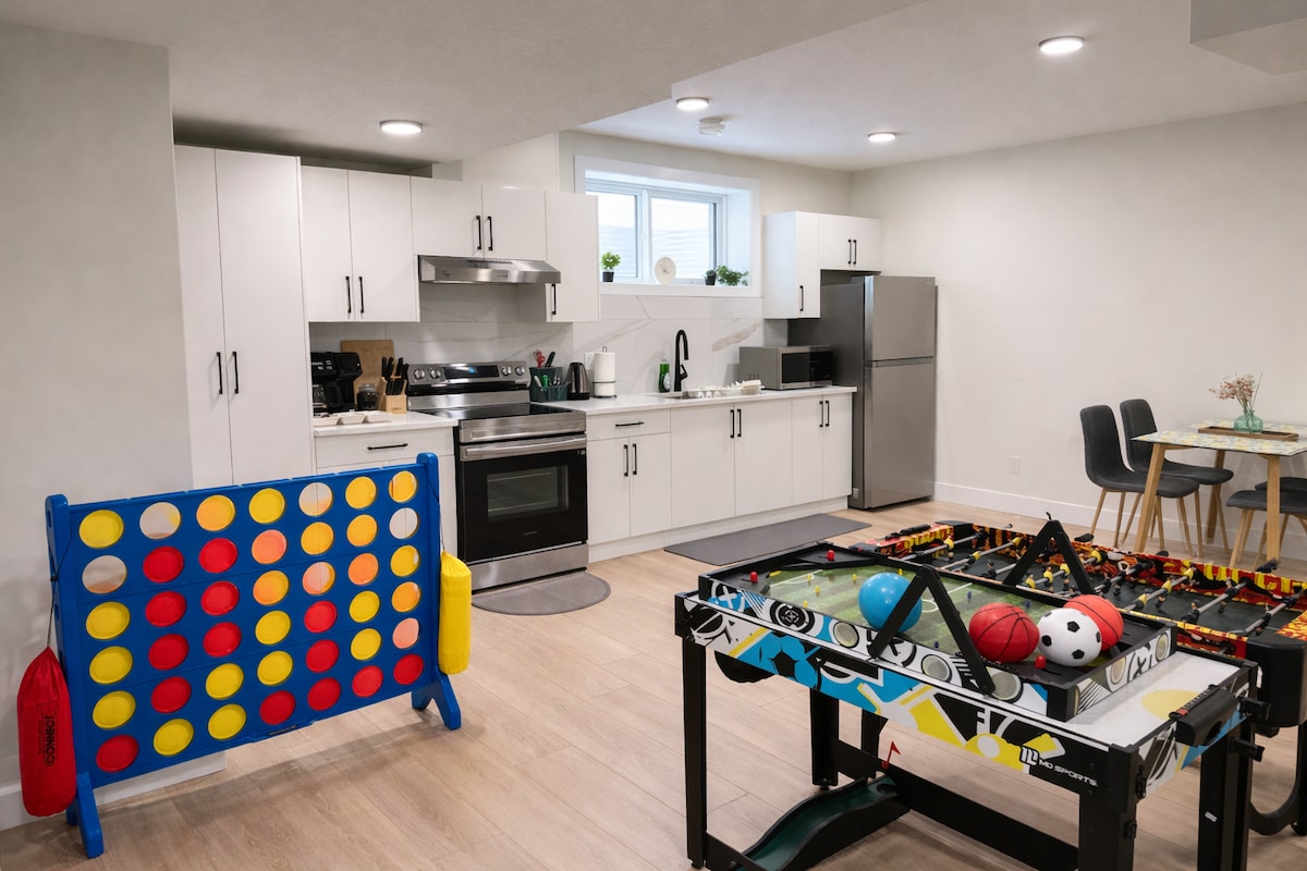 ¡Bienvenido a su hogar privado lejos de casa, espacioso, cómodo y totalmente equipado para su estancia en Edmonton! ✓ No hay una larga lista de tareas de salida: ¡nosotros nos encargamos de la limpieza! Suite privada✓ de 2 dormitorios Entrada ✓ independiente Cocina ✓ completa, baño, salón-comedor Lavandería ✓ gratuita en la suite ✓ Mesa de hockey de aire A ✓ 15 minutos del centro ✓ A 5 minutos de Sherwood Park. ✓ Fácil acceso a Yellowhead y Henday ✓ A 10 minutos del estadio de la Commonwealth ✓ A 1 manzana del valle del río y Rundle Park ✓ Insonorizado ✓ Wifi rápida Mantas y toallas✓ adicionales