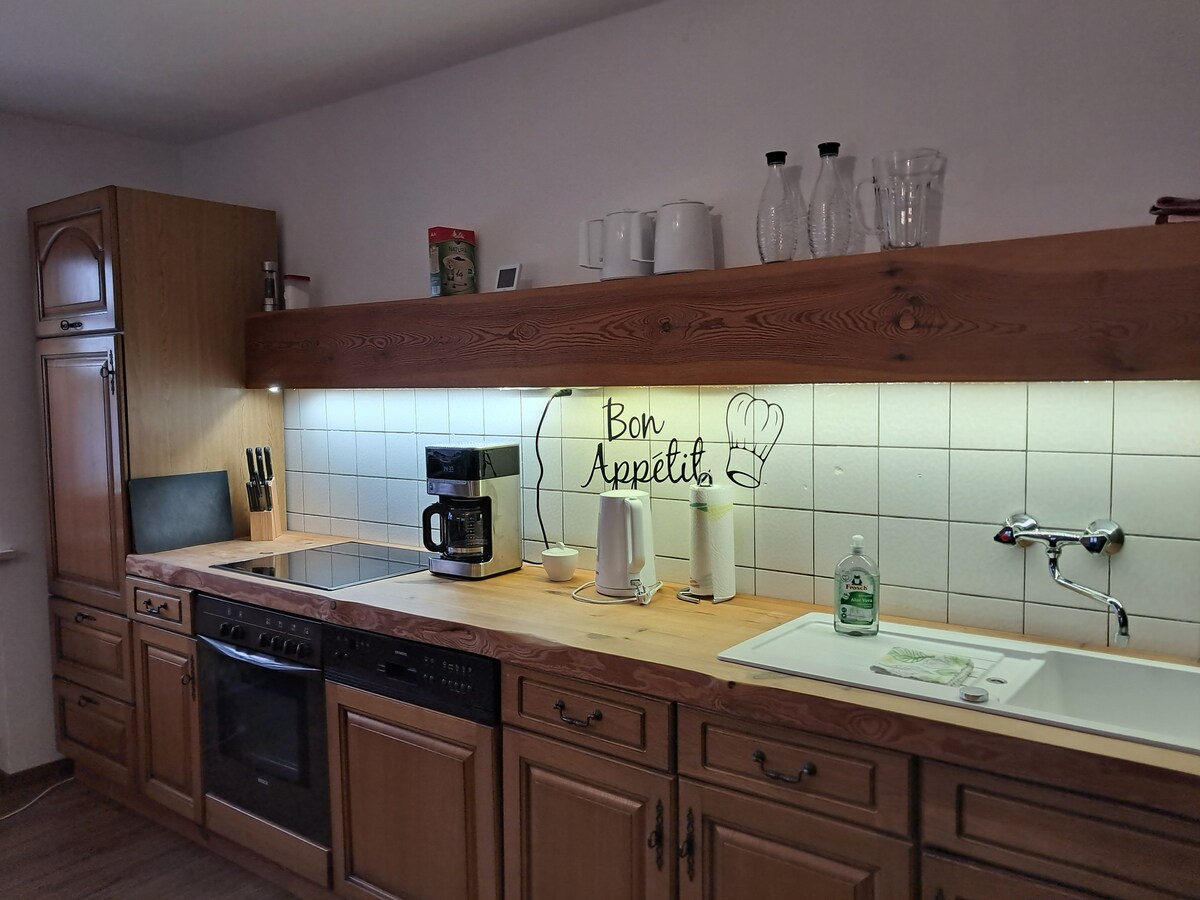 El pequeño apartamento tiene una acogedora sala de estar con un banco esquinero, una pequeña cocina y un sofá. En el dormitorio se duerme cómodamente en colchones nuevos. En otra habitación hay una litera con espacio para dos huéspedes pequeños. Y desde la gran terraza orientada al suroeste se puede contemplar el panorama de las montañas de Zellertal: ¡el largo sol de la tarde en verano es de ensueño!