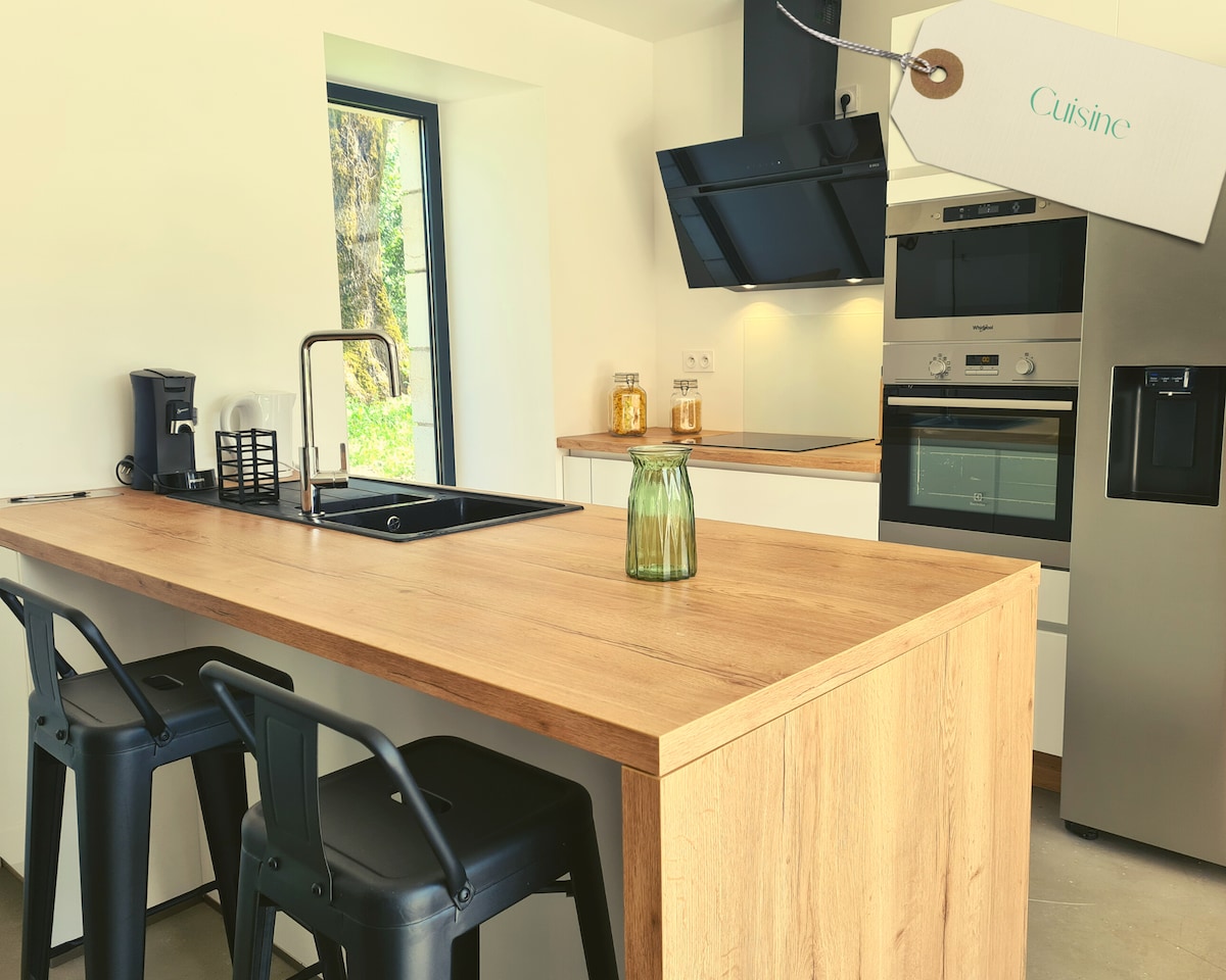 Descubre En Haut du Paradis un joyero contemporáneo de 94 m² bañado en luz☀️, idealmente situado en Sadroc, en el corazón de la Corrèze. Con sus dos dormitorios tamaño king🛏️, su cocina totalmente equipada y su spa privado de 5 plazas con vistas espectaculares, es el lugar perfecto para relajarse con total privacidad. Disfruta de un confort de alta gama: aire acondicionado❄️, mobiliario de diseño a medida, baño elegante y una pared de piedra que añade encanto y carácter.