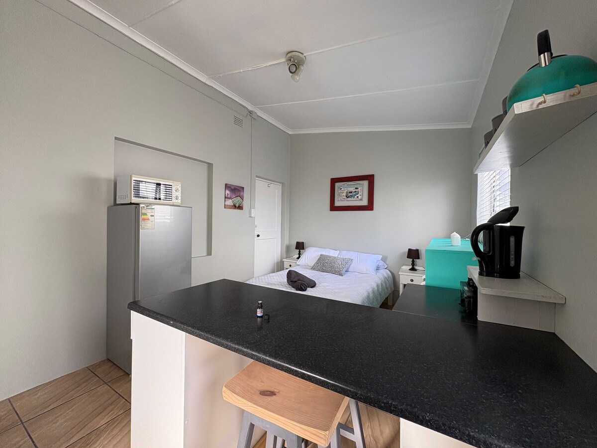 Amplia suite privada con una cómoda cama tamaño king, baño privado, cocina bien equipada y zona de estar. Escala perfecta para una estancia relajada en Struisbaai/Lagulhas. Wifi, luces, agua caliente y una cocina de gas disponibles durante el corte de energía. Aparcamiento seguro fuera de la vía pública. A 5 km del extremo más meridional de África, a 5 minutos a pie de la playa más cercana y muy cerca del puerto de barcos de trabajo, restaurantes y la playa más larga del hemisferio sur.
