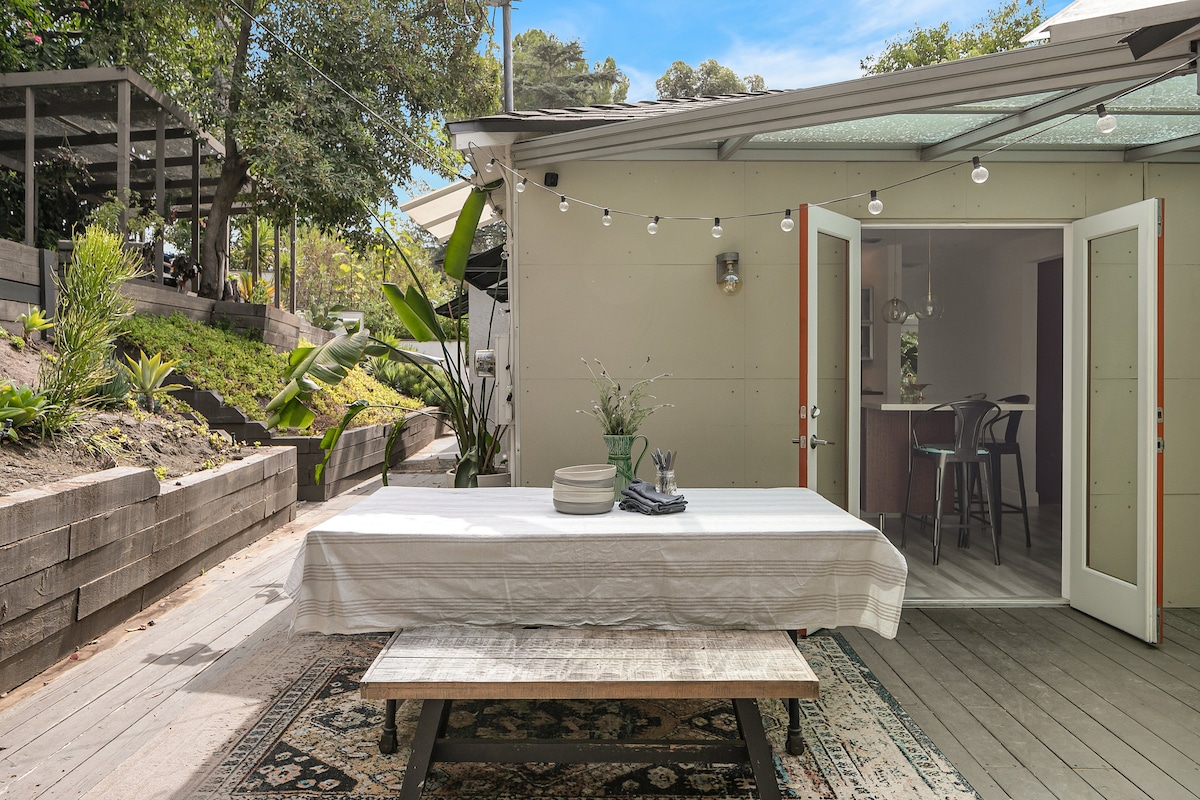 Hermosa y acogedora percha de 2 Bd/2 Ba en Studio City. ¡Vistas a Hillside Canyon! ¡Perfecto para vacaciones, compañeros de trabajo, parejas, escapadas familiares y así sucesivamente! Las grandes ventanas en todas partes proporcionan un ambiente luminoso y cálido. Plano de planta abierto. Tienes acceso a un televisor de 50pulgadas con sonido envolvente, electrodomésticos vikingos, una barbacoa y una cama Tempur-Pedic Queen de alta gama en el dormitorio principal. También hay una amplia terraza con una mesa de picnic y asientos al aire libre. ¡Te sentirás como en un refugio tranquilo con las puestas de sol de la zona surrealista!