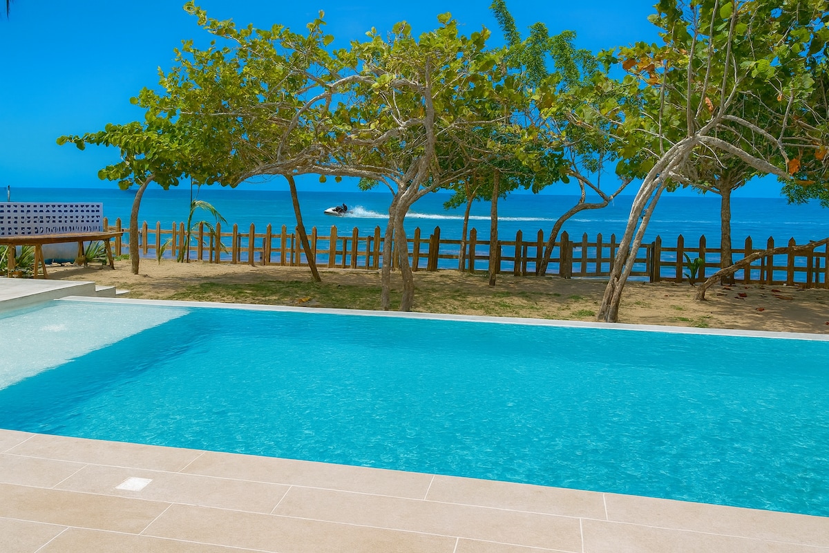 Comoda casa entera privada +20 metros de playa exclusiva sobre el Mar Caribe +Capacidad para 14 huespedes (11 camas & 5.5 baños) +Amplia Piscina y Jacuzzi sin fin +Disfruta de uno de los mares mas calientes y seguros del mundo en familia o con l@s amig@s + Comedor se convierte en mesa de Ping Pong + Cancha de Volley Ball + Cocina completa + Mariscos y pescados traídos a la casa