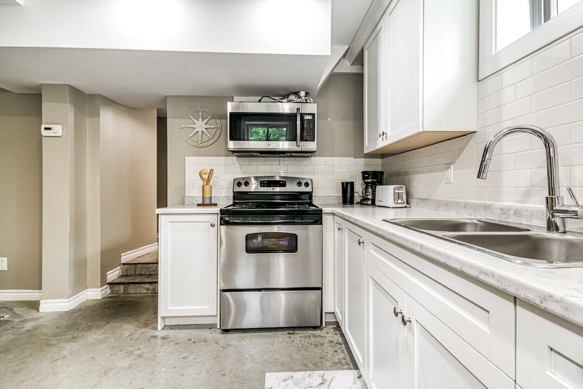 Hermosa suite nueva de un dormitorio totalmente amueblada con cocina luminosa y moderna en un barrio céntrico de New Sudbury, cerca de todos los servicios. La unidad tiene entrada privada y estacionamiento para dos vehículos. Cuenta con wifi de cortesía y acceso al patio trasero. Esta unidad fue completamente reformada en enero de 2023 y está libre de alfombras, sin humo y sin mascotas. Queremos que disfrutes de una experiencia increíble con los huéspedes y estamos disponibles por teléfono o mensaje de texto las 24 horas, los 7 días de la semana.