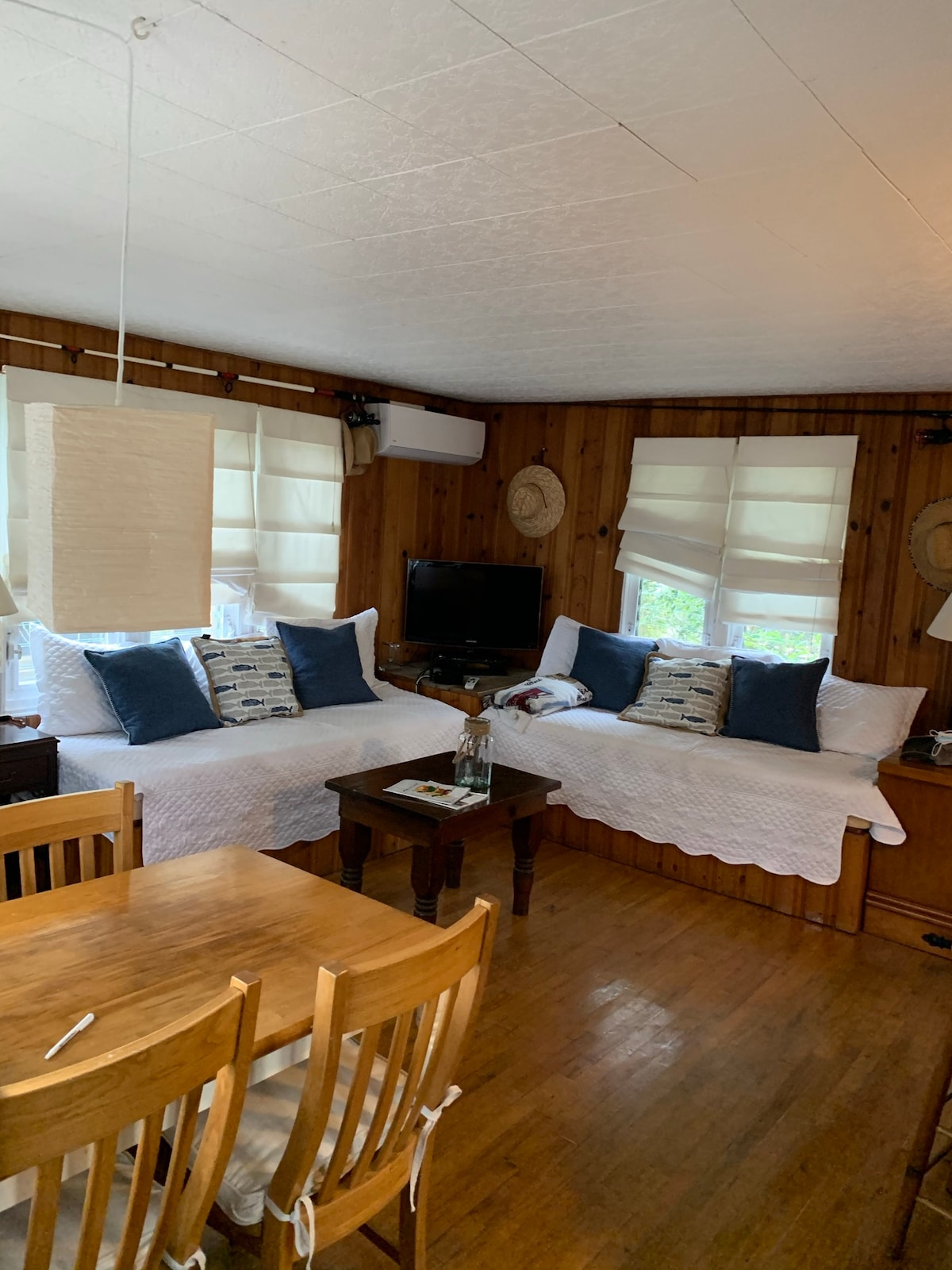 A pie de la playa. Connecticut Shoreline en Clinton, situado entre Madison y Old Saybrook. Relájate en este elegante bungalow con vistas al agua y al jardín, cocina totalmente equipada, sábanas de lujo, cómoda cama tamaño queen, hermosos muebles y techos abovedados. Para que tus días de playa sean sencillos, se incluyen toallas de playa y carros. Perfecto para parejas que buscan una escapada relajante a la costa. ¿Estás planeando una reunión más amplia? ¡Pregunta por nuestros otros 3 bungalows y The Captains House con capacidad para 4 personas!