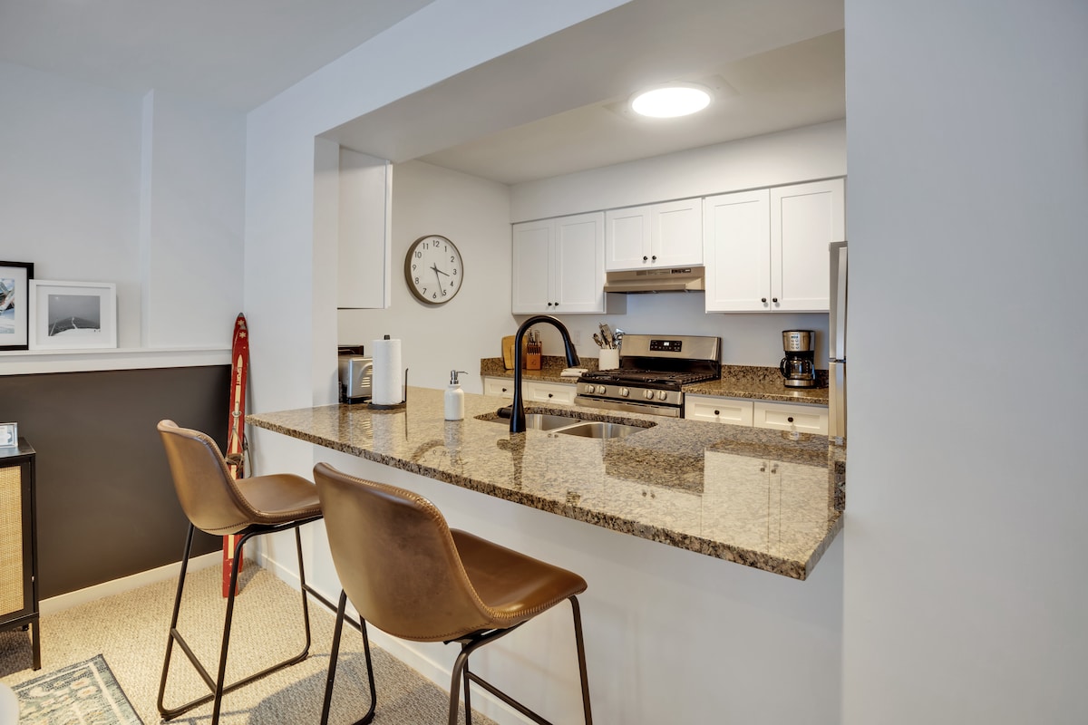 ¡ESQUIE DIRECTAMENTE! ¡Olvídate de los aparcamientos llenos o de esperar al autobús! Este luminoso y abierto apartamento en la montaña está a 30 pies de la pista Out to Lunch, donde puedes esquiar o ir en bicicleta directamente a los remontes y pistas de ciclismo. Disfruta de comodidades como el nuevo balcón, la relajante chimenea de gas, la piscina al aire libre de temporada, la lavadora/secadora, el casillero asignado para guardar esquís y tablas de snowboard y un gran televisor inteligente. El anfitrión posee un segundo apartamento en el mismo complejo y estará encantado de alojar grupos grandes.