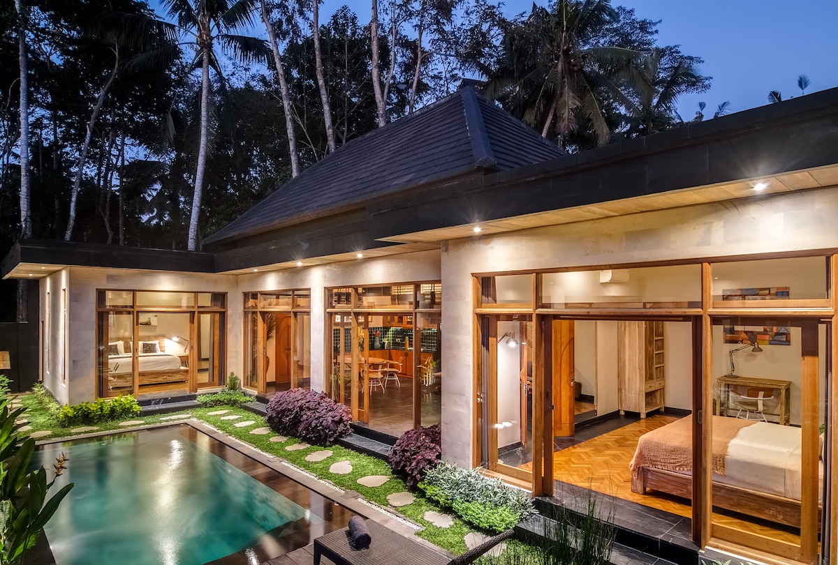 Escondido en el corazón de la exuberante selva de Ubud. Más que una estancia: es un viaje al corazón del alma artística de Bali. Vuelve a conectar con la naturaleza. Despierta con las melodías de los pájaros y relájate bajo los vibrantes árboles frutales. Pasea por pintorescos campos de arroz, disfruta de los sabores locales en cafeterías encantadoras o simplemente relájate en tu refugio verde privado. A solo 10 minutos del emblemático Bosque de los Monos de Ubud, los bulliciosos mercados y el encanto cultural del Palacio de Ubud, felizmente aislado para la paz definitiva.