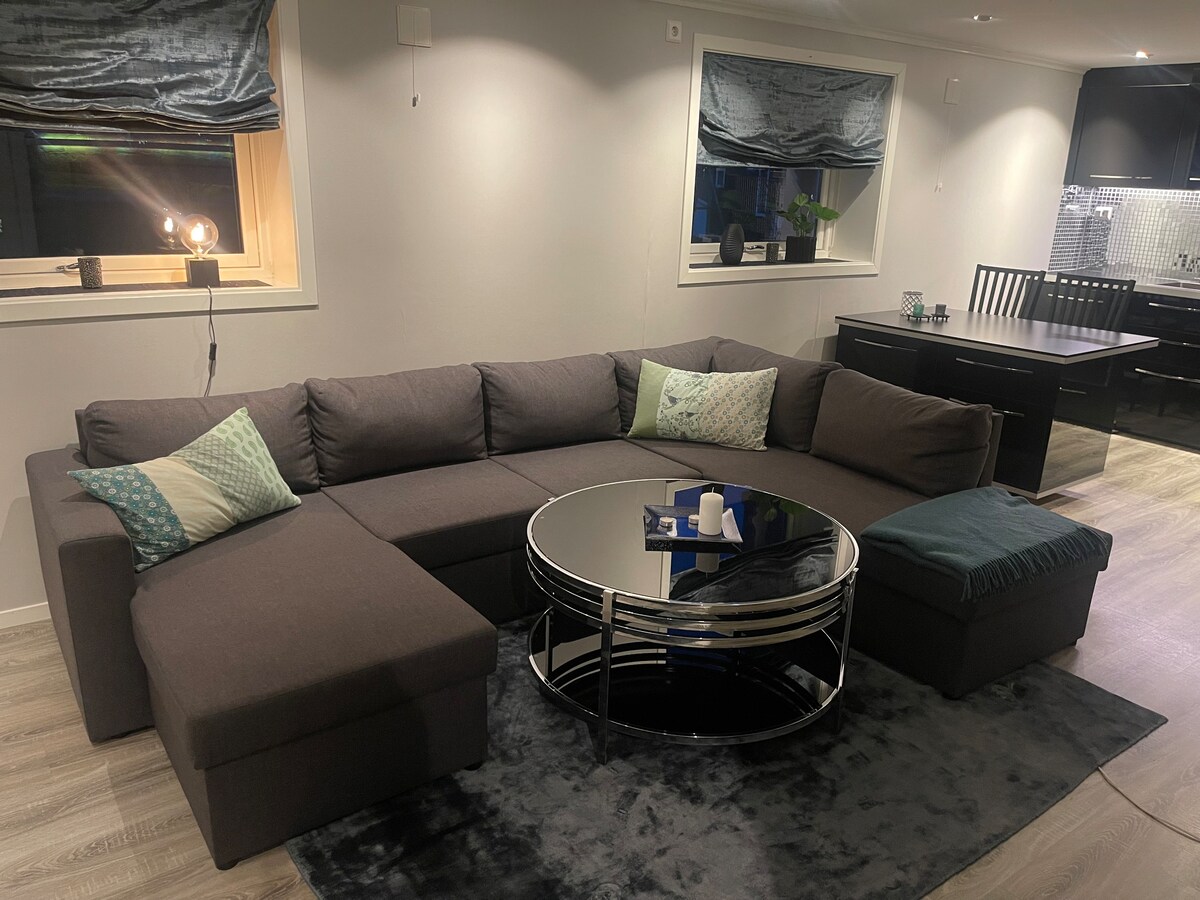 Experience stylish living in Hareid! This modern apartment is a peaceful sanctuary near the stunning Norwegian coastline and Sunnmøre Alps. Perfect for getaways or remote work, it features a large private terrace and a beautiful garden. Just a short walk to the beach, with full laundry facilities and free parking included. Planning an extended stay? We offer custom rates for long-term guests—send us a message to discuss your needs!