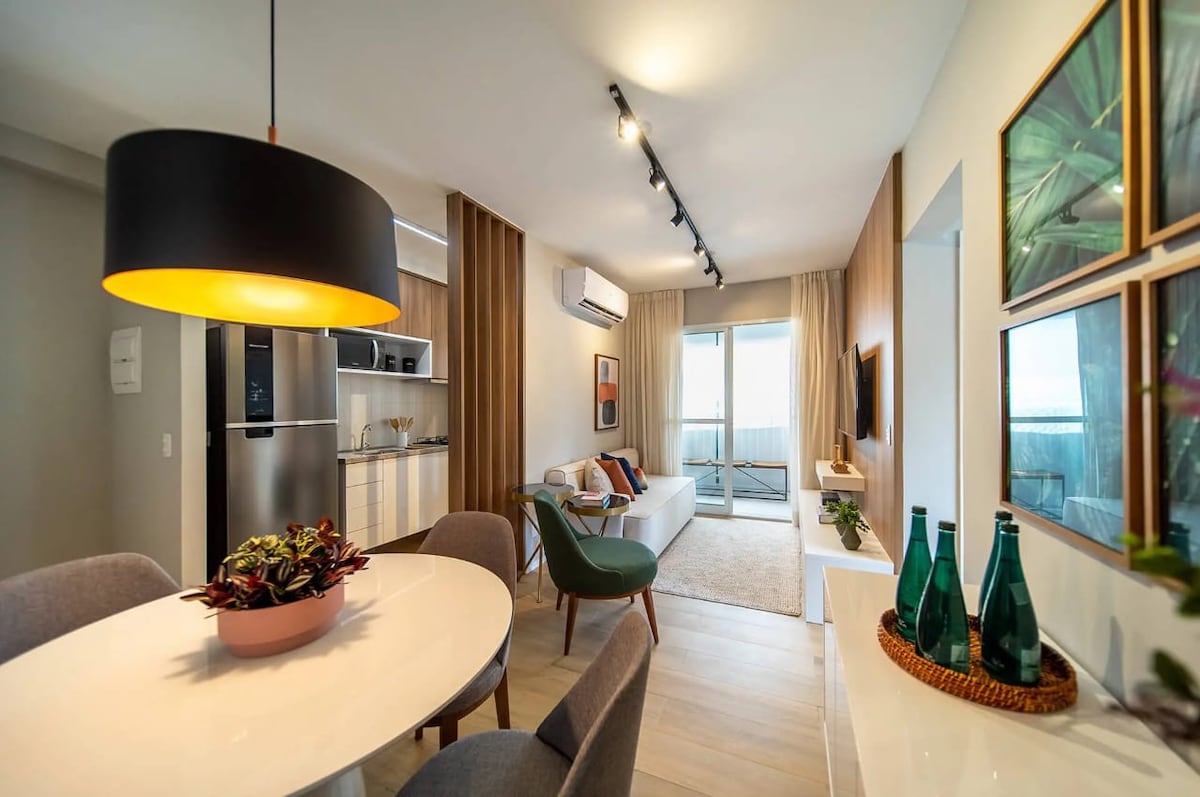 Setin Midtown Campinas te está esperando. Nuestro departamento tipo estudio tiene 45 m2 con concepto totalmente abierto, completo con utensilios, con aire acondicionado, todas las comodidades que te gustaría tener en tu alojamiento combinadas con una decoración moderna. Tenemos un garaje privado, un conserje las 24 horas y un "mercado". Estamos a 17 minutos del aeropuerto de Viracopos, a 5 minutos de Royal Palm Events.
